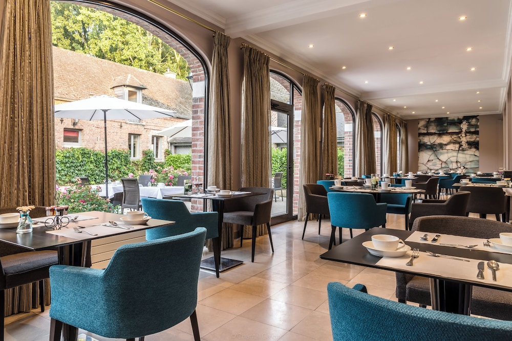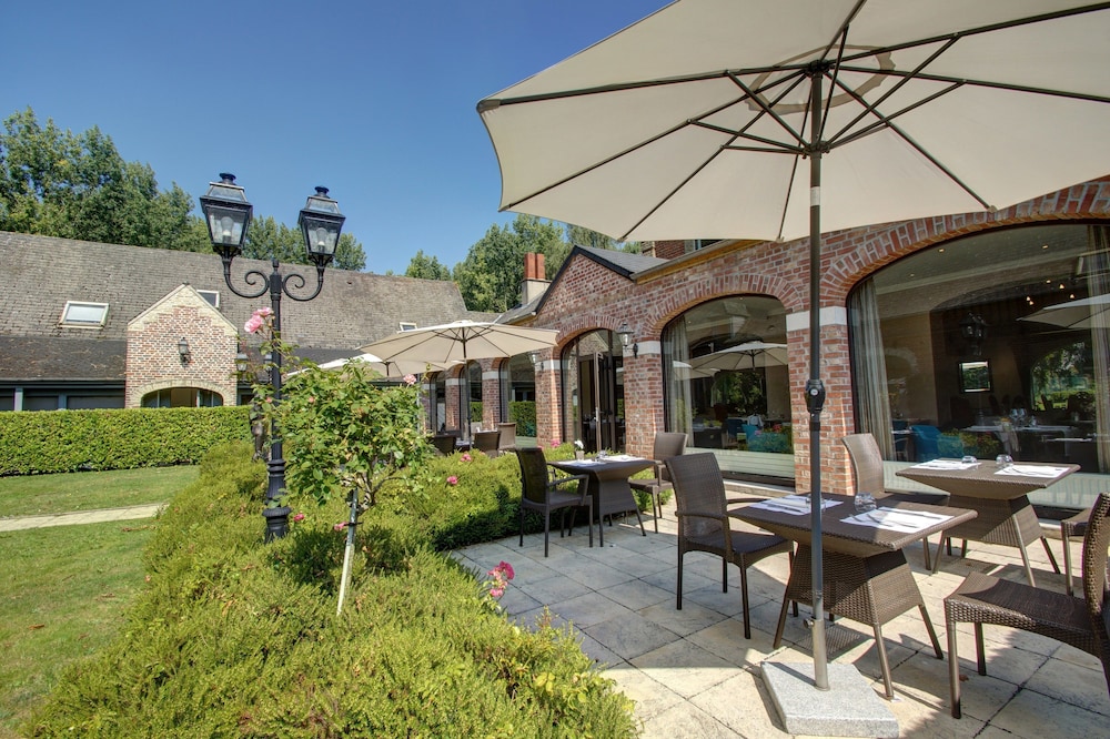 Charming hotel, very close to Saint Omer and only half an hour away from Calais. Quiet rooms with views onto landscaped lawns. The decor is a little dated with a few scratches, but otherwise everything was clean and tidy. Breakfast buffet (€18) is served in an adjacent converted building. Ample parking and dog friendly too.