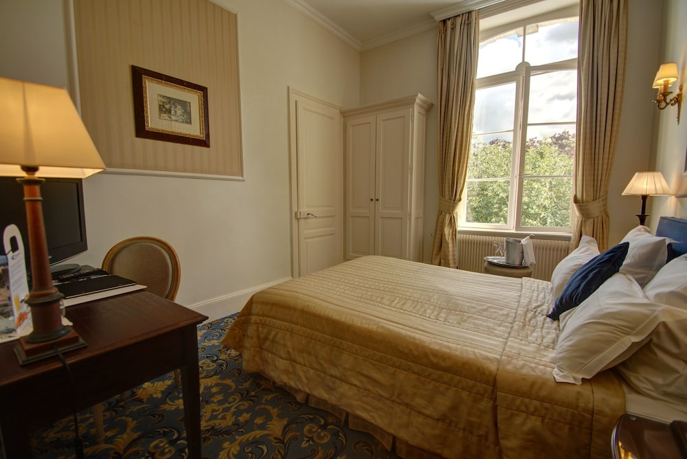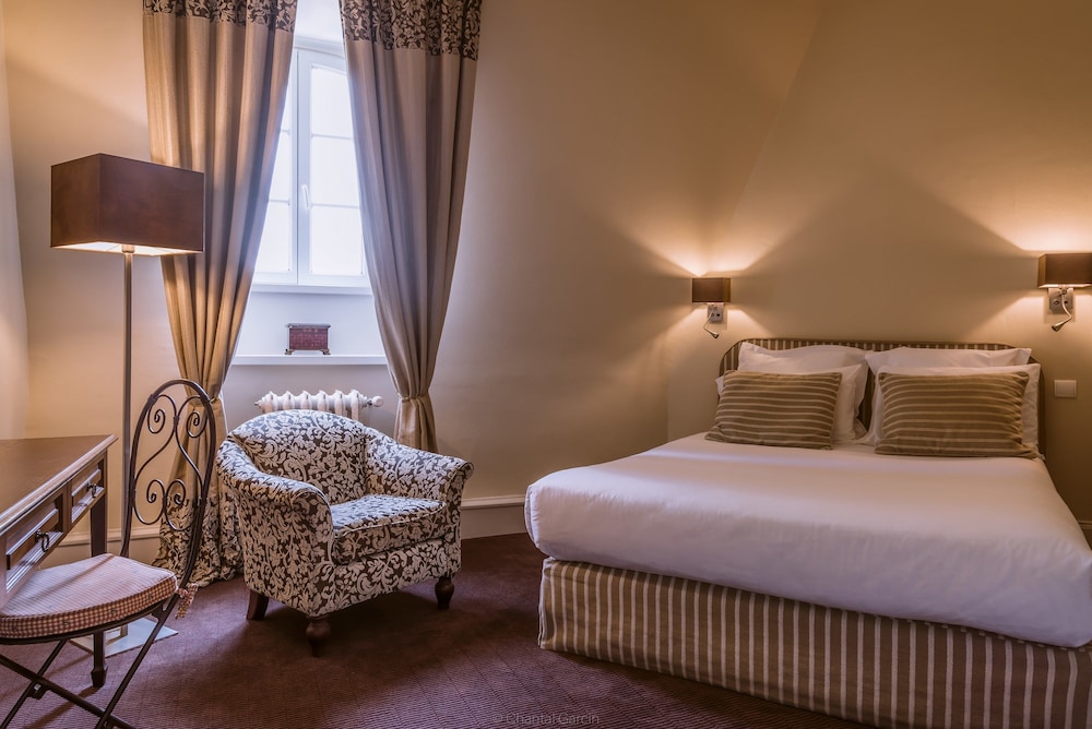 Hotel was a beautiful old Chateau. Our Luxe room was on 2nd floor and a lot of stairs and no lift! I also would have expected AC. Being so high up into the eaves the room was very warm. The tea and coffee provision in the room was poor. We were kept awake well after 11pm by music and loud voices in the bar, amd on the terrace, even though we were told the bar closed at 10.