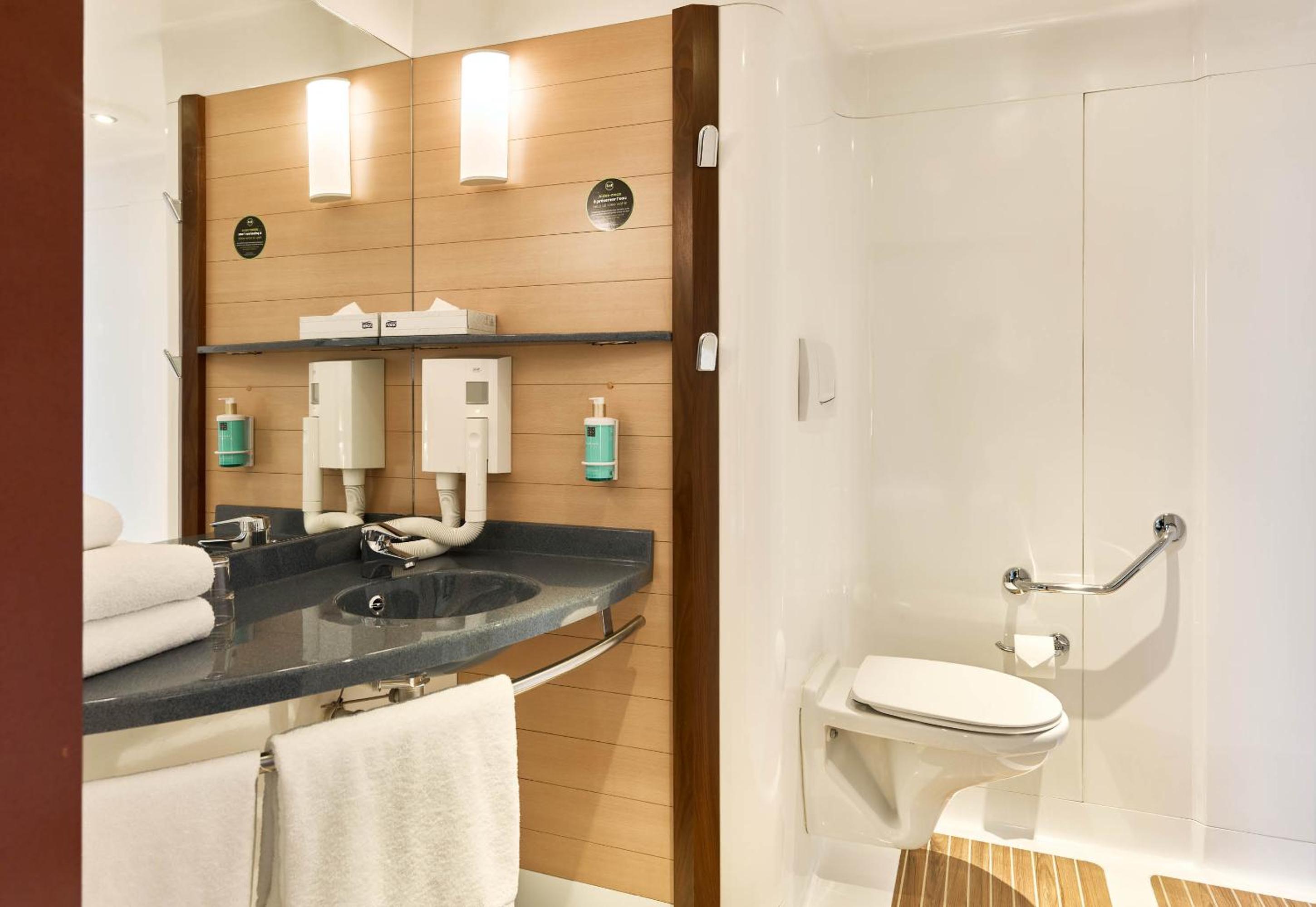 Chambre très spacieuse, bien équipé, déco sur le thème du sport sympa, petit déjeuner correct, proximité avec Adidas arena parfait 3 min a pied j'avais peur de me sentir en insécurité vu le quartier mais tout c'est bien passé, la parking souterrain est pratique ! Personnel serviable et agréable !! On reviendra pour notre prochain concert !!!