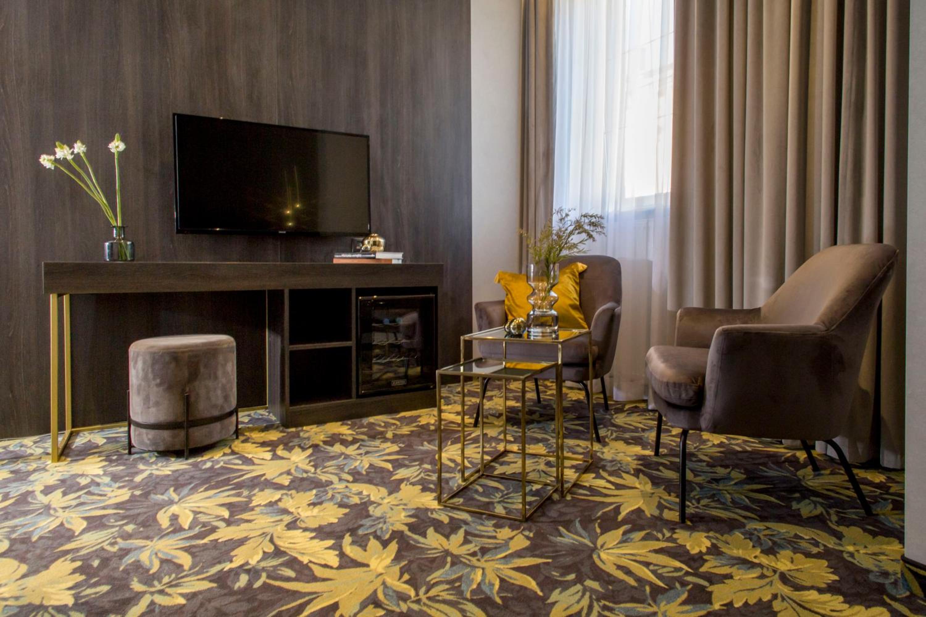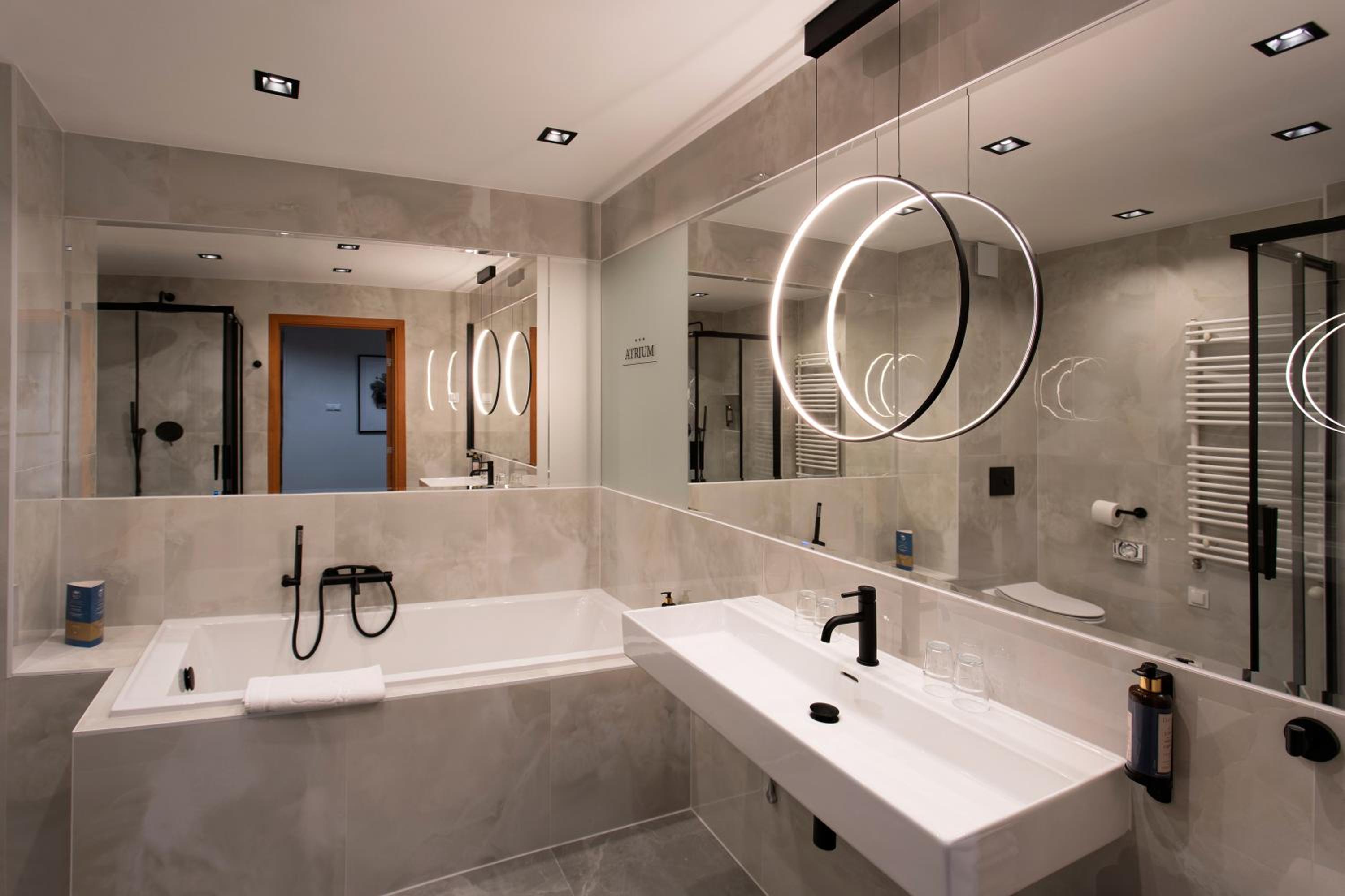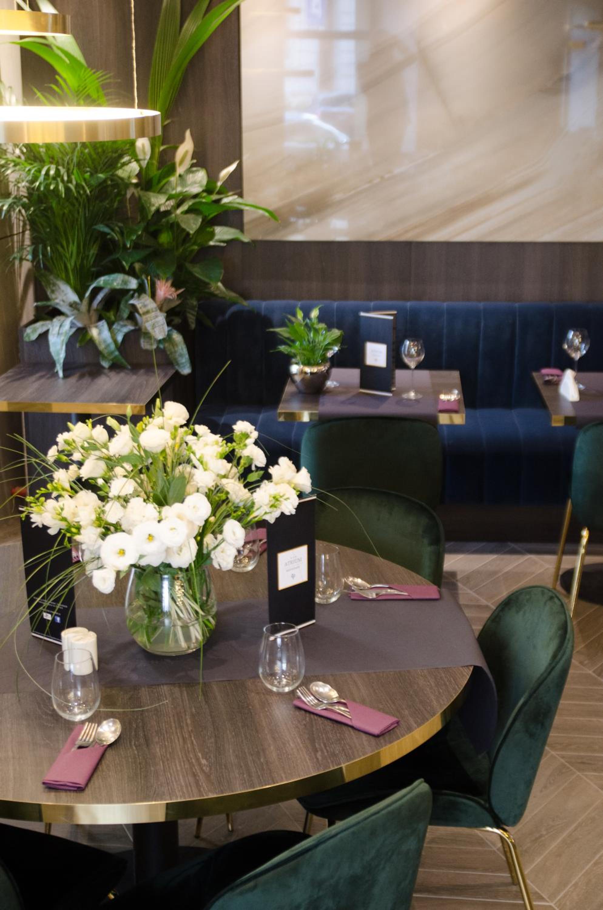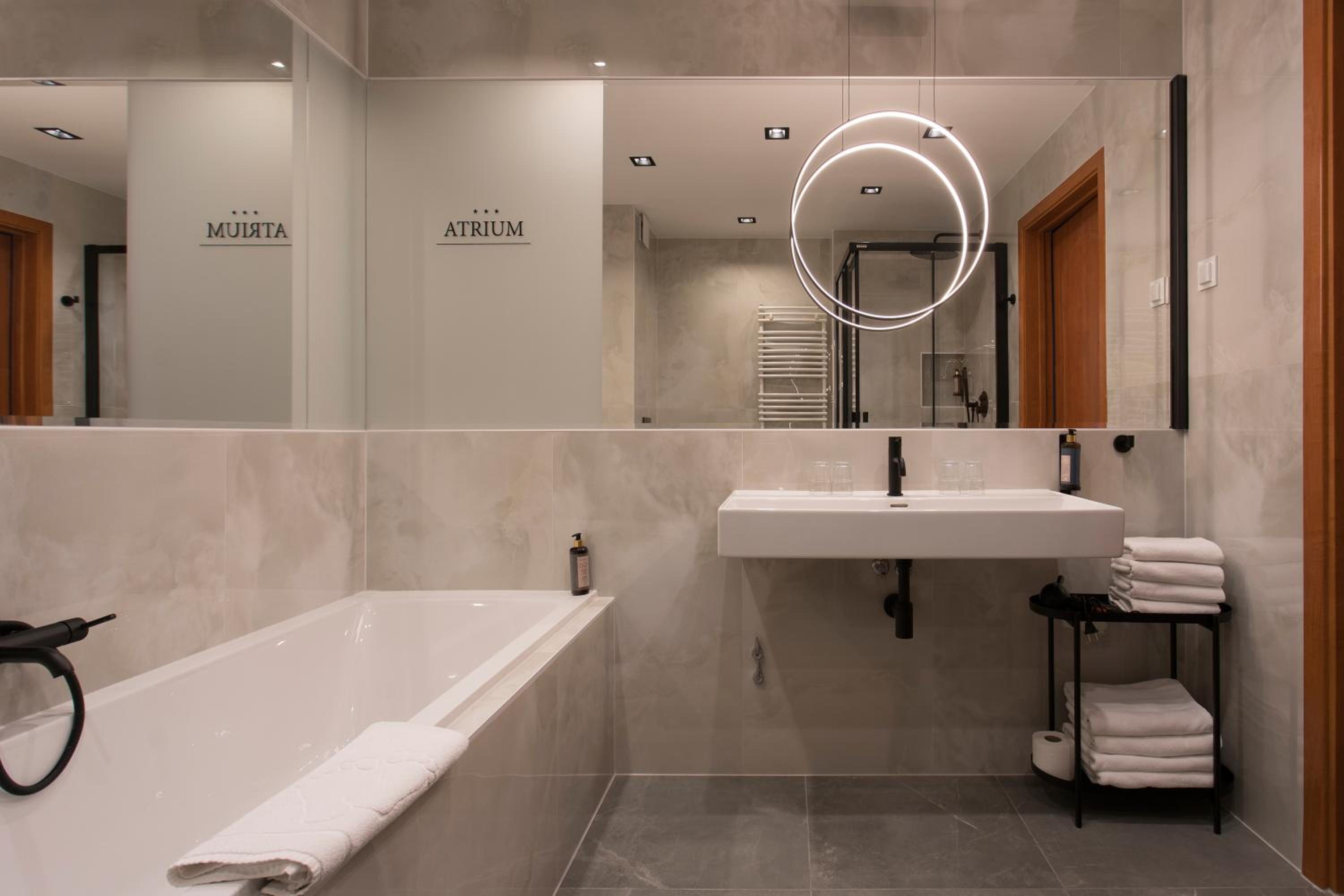 Classically furnished rooms at Atrium offer free Wi-Fi and satellite TV, ensuring a cozy stay. Modern bathrooms, workspaces, and telephones add convenience.