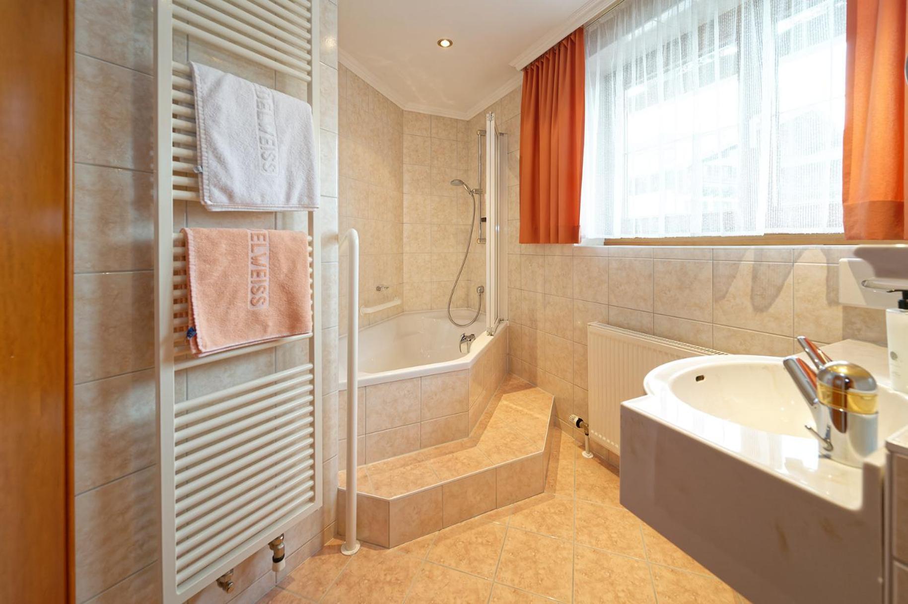 Hotel Edelweiss, located near popular ski resorts in Maria Alm am Steinernen Meer, offers a luxurious stay with modern amenities. The rooms feature flat-screen TVs, comfortable seating areas, and private bathrooms with bathrobes and slippers provided for your comfort.
