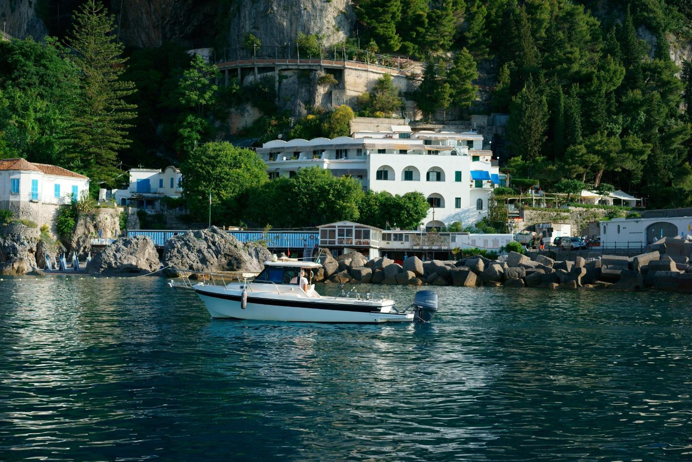 Relax in style at our private beach surrounded by a tranquil park filled with pine trees and bougainvillea. Reserve a sun lounger and umbrella for the ultimate comfort. Explore Capri and Positano with ease from the nearby pier.