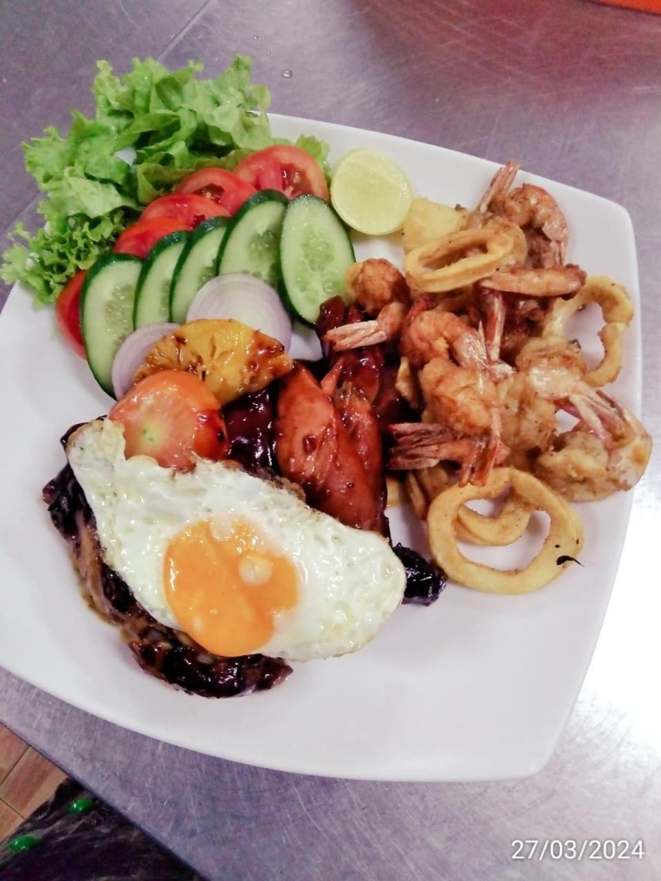 It is in a very quiet part of Negombo, right next to a huge lagoon and close to a beach from where you can watch the sunset. The room was spacious and comfortable. The food, what little we had, tasted pretty good.