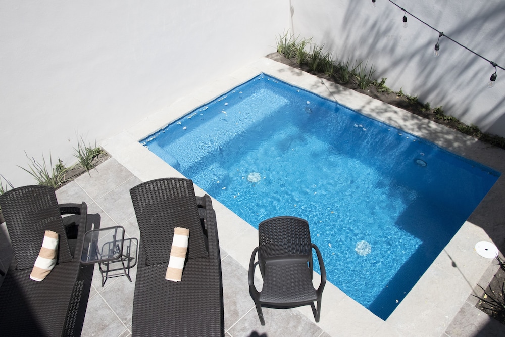 There was a pool with 2 lounge chairs that hot sun for maybe 90 minutes/day. It was also only about 8' x 12'. Personally, it would have been a better hot tub size!