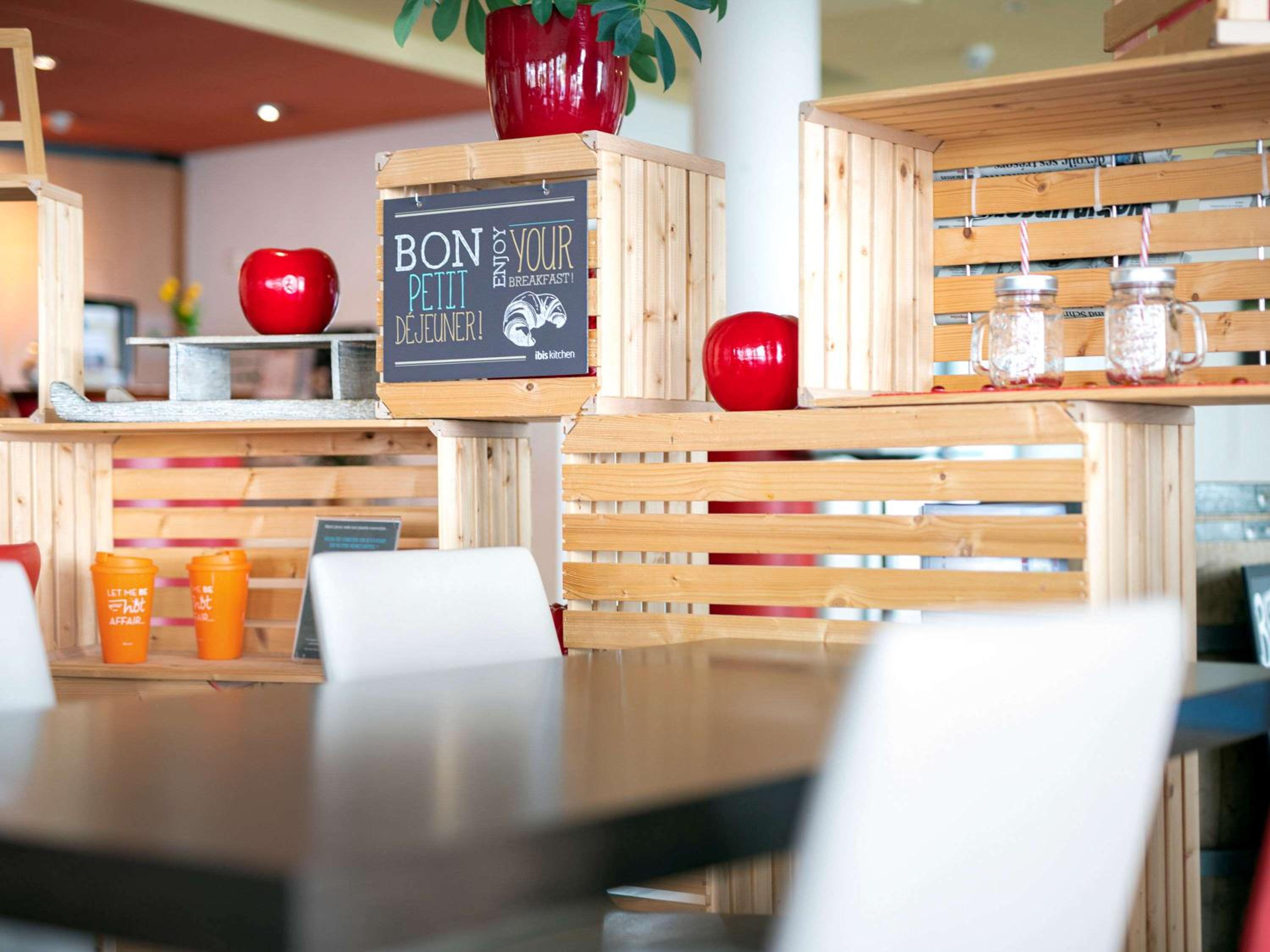 Indulge in the extensive breakfast buffet offered during the week and weekends. Guests can also savor a variety of dishes at the FRIBIS bistro with a charming terrace, serving food 24/7 for ultimate convenience.