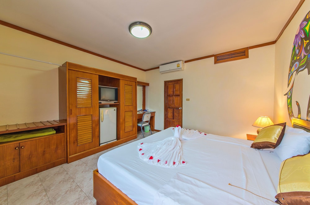 The room is reasonably clean however it really needs renovations. The furniture is from the 70’s and the mattress was well used as I could feel every spring. The water in the shower did not work sometimes however the aircon was excellent. Overall for the price it was good. The owner needs to pull out his finger and get the pool fixed. As it is green and has been for nearly a year, I was in room 215 which was furthest from Bangla rd noise so it wasn’t too bad. If you are a family I wouldn’t recommend as there were some strange guests that looked like they were from Breaking Bad, mainly single men and backpackers. Went to check out and never any staff at the front desk, so just dropped my key in the box on the counter and left. Close to all shopping and restaurants in the area, but it is very hard to find from the street. Needs better signage.