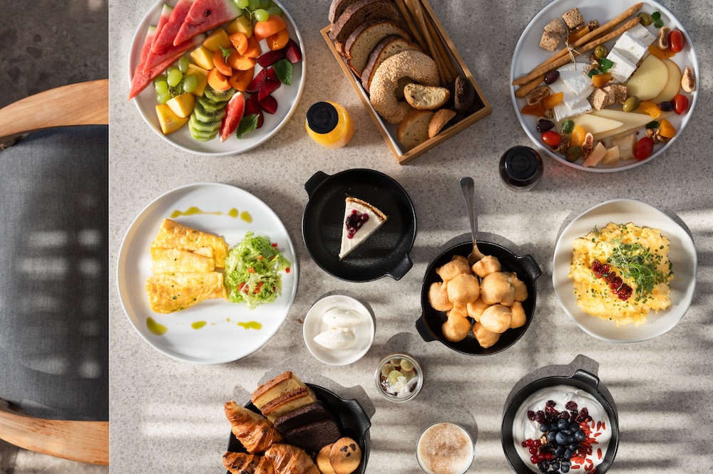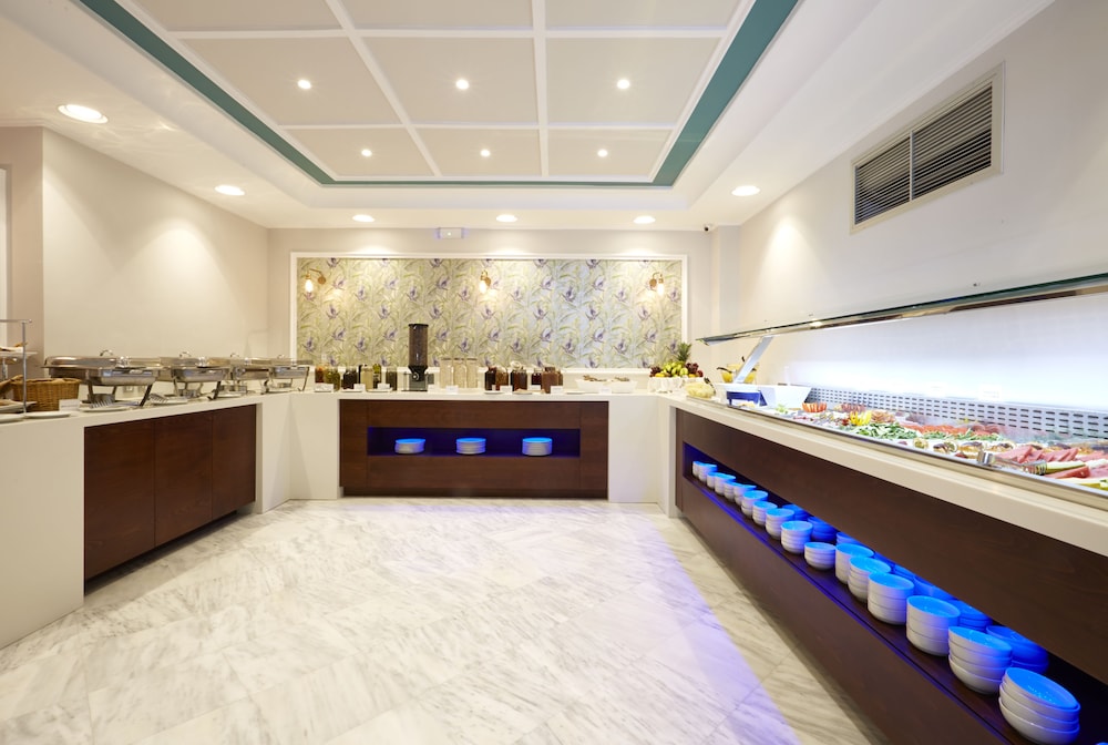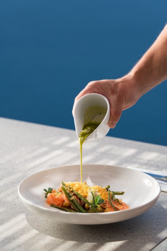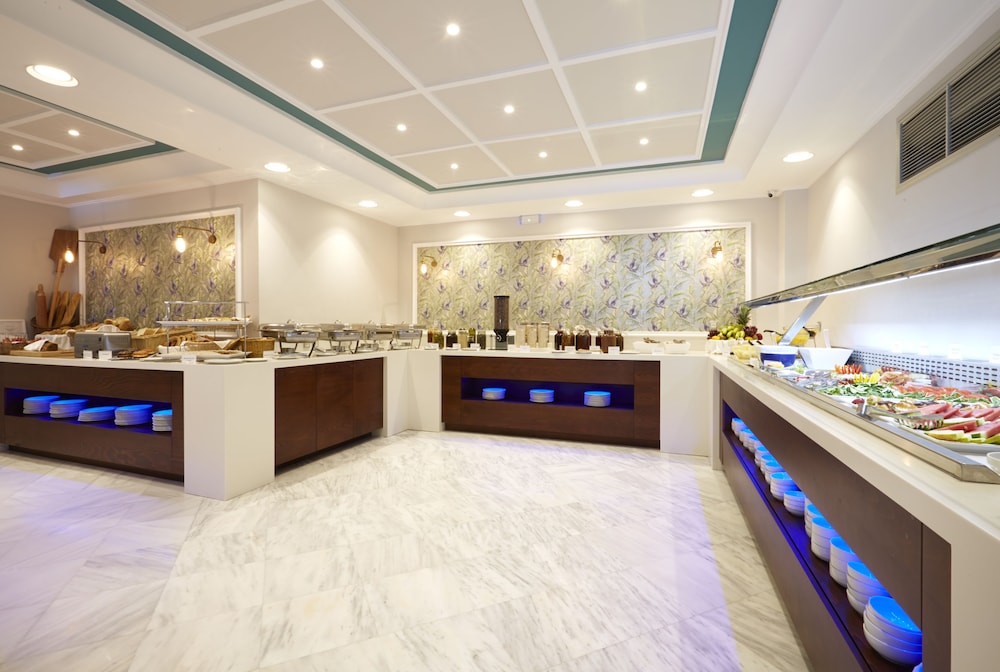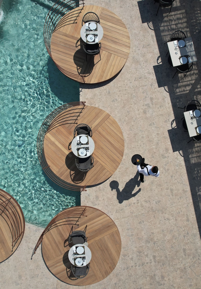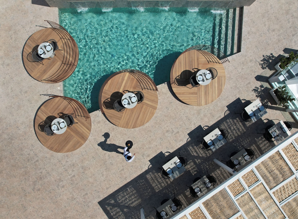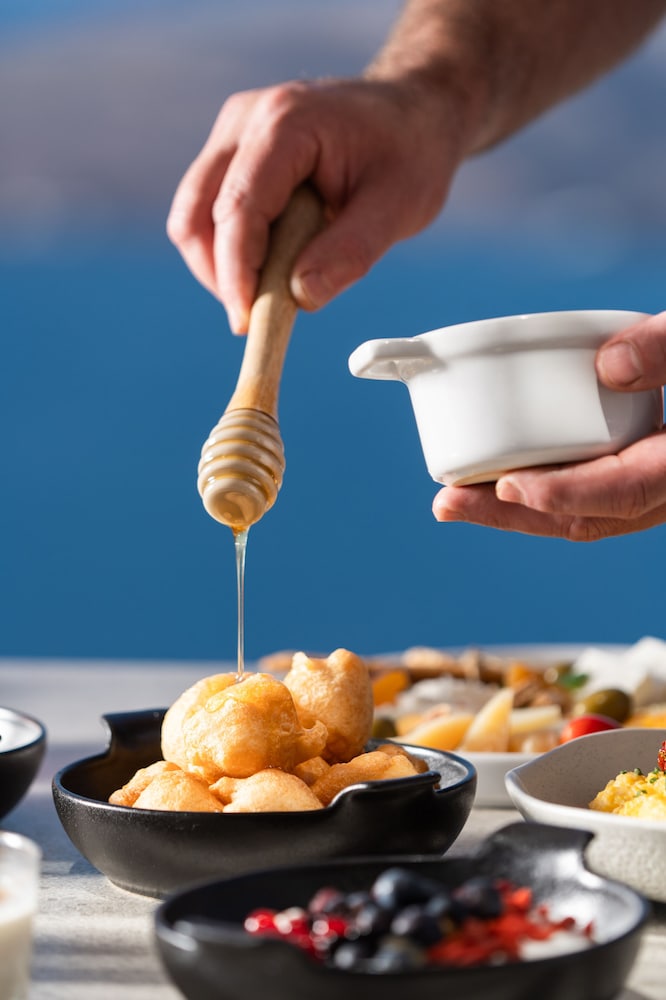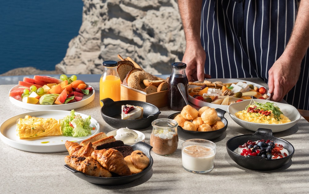 Culinary Delights Dine at our renowned restaurant, Caldera, featuring international cuisine alongside stunning ocean views. Start your day with a complimentary buffet breakfast and sip cocktails by the poolside bar while absorbing the sun.