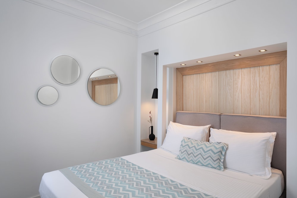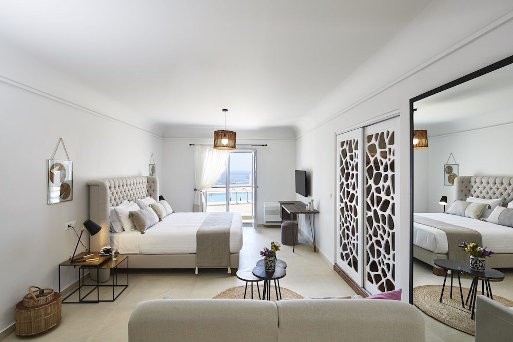 Comfort & Connectivity Retreat to one of our 100 uniquely decorated guestrooms, each boasting private balconies, flat-screen TVs, and complimentary Wi-Fi. Enjoy the convenience of a complimentary shuttle to nearby shops and attractions, ensuring you experience all that beautiful Santorini has to offer.