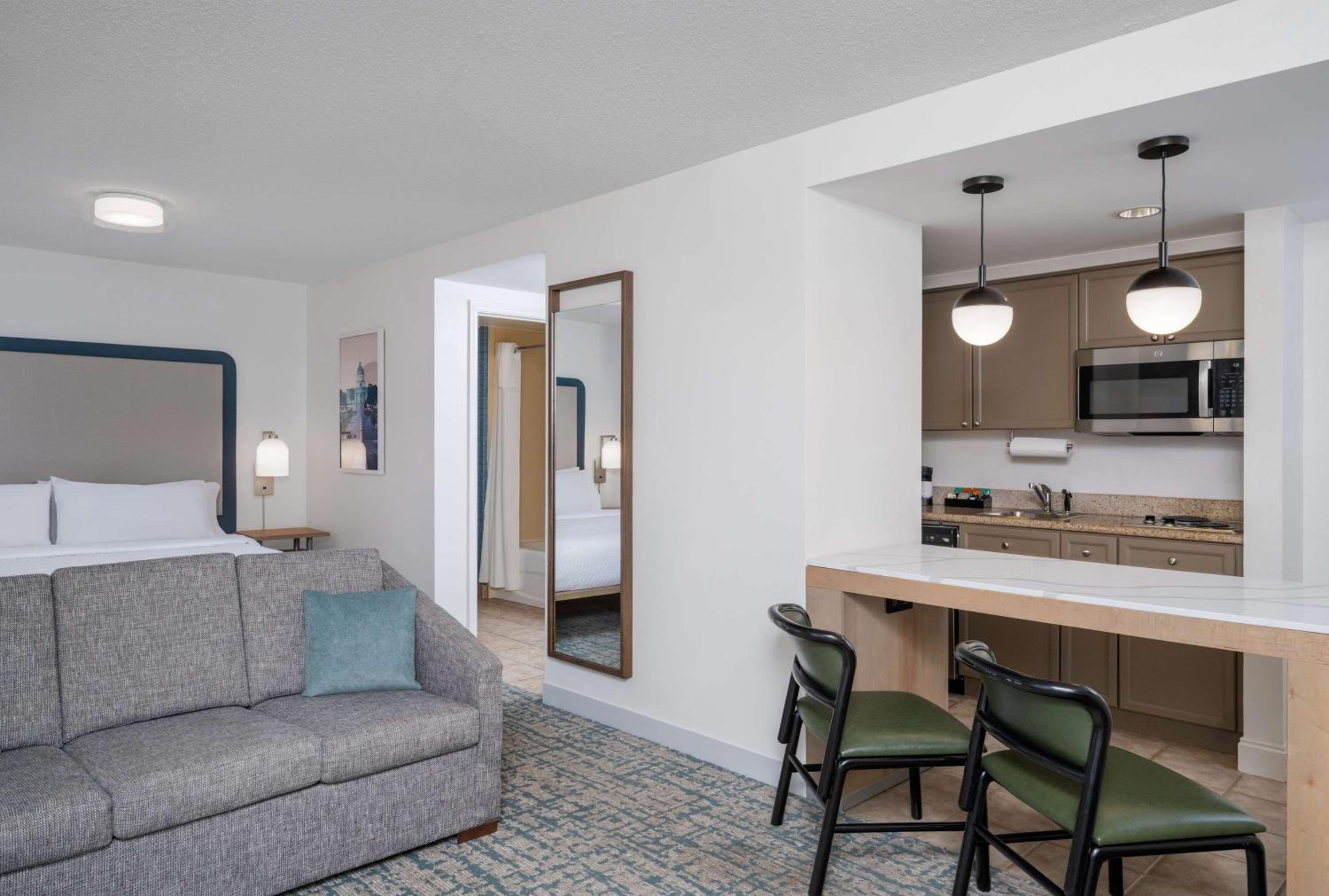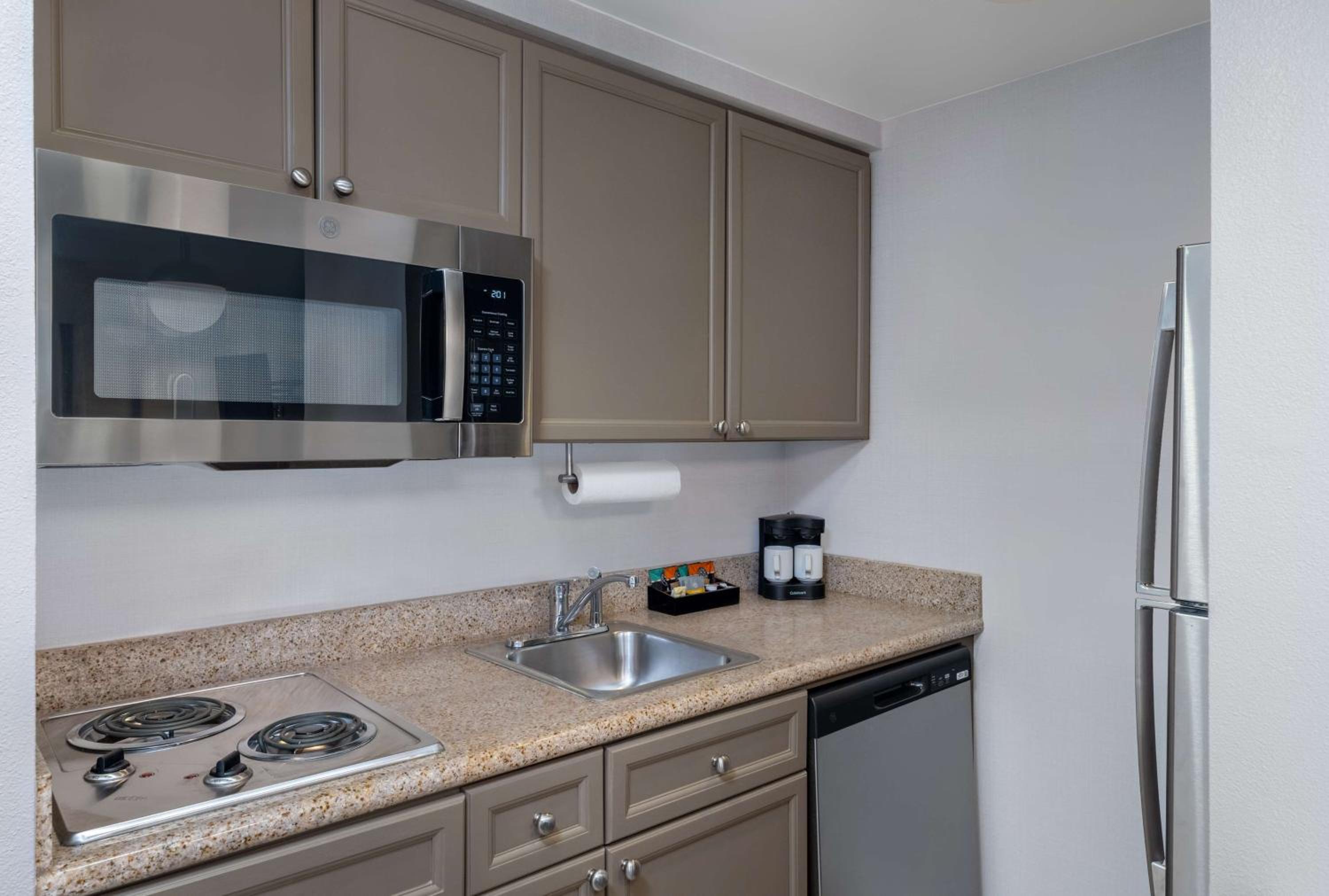 Indulge in comfort and convenience at the Montgomery Homewood Suites by Hilton. Each suite boasts a range of amenities including a cable TV with DVD player, small refrigerator, and microwave.