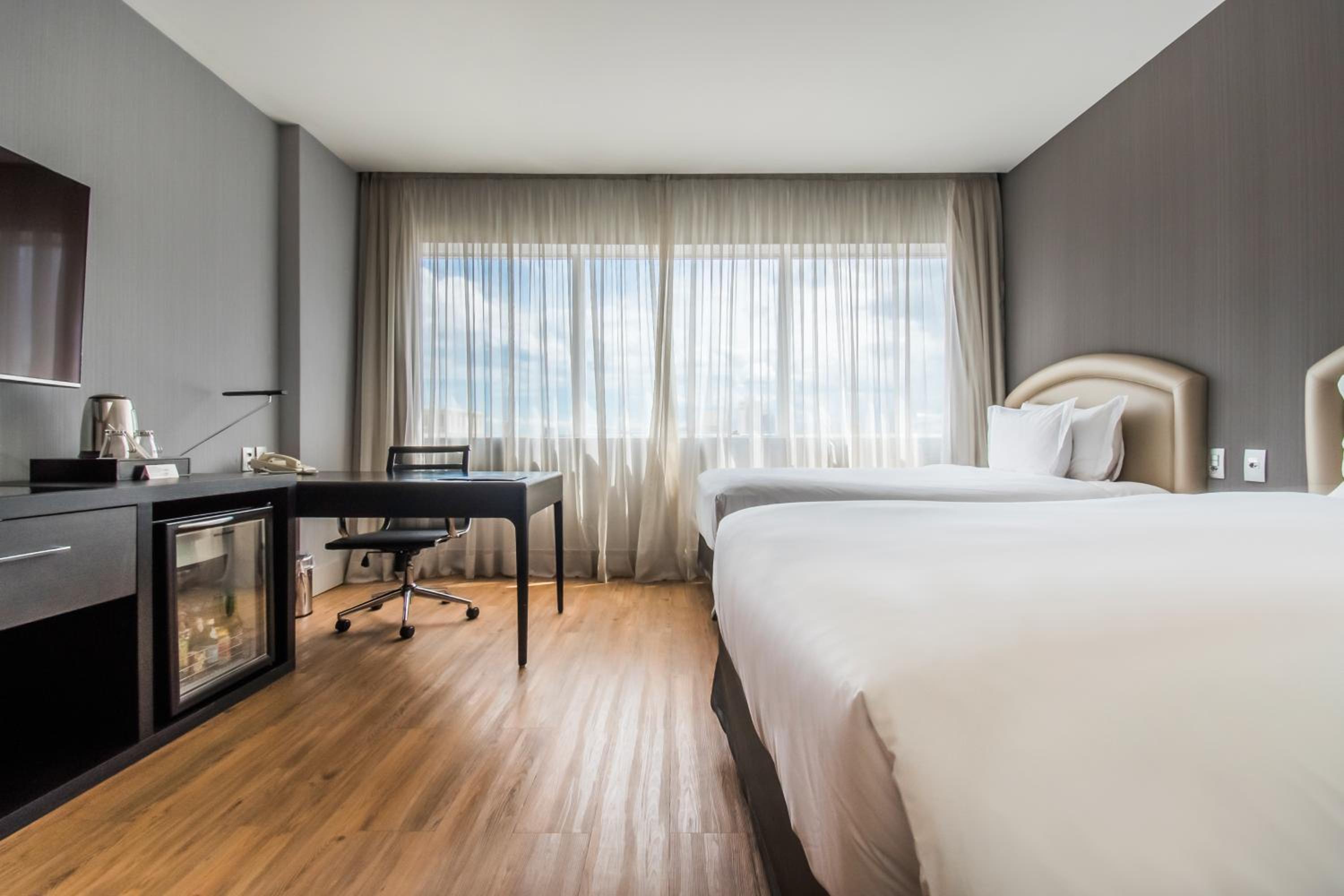 Pullman São Paulo Vila Olímpia provides spacious, well-equipped rooms and suites with Smart TVs 55", ensuring a comfortable stay for business travelers.