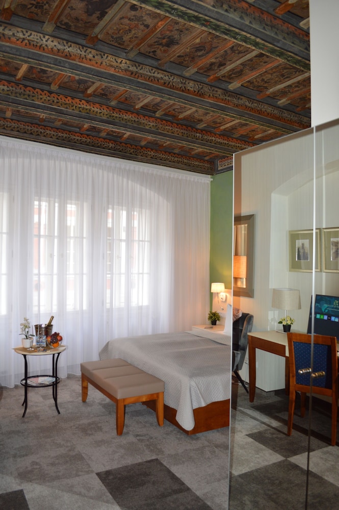 Upon arrival , the ambiance was positive: traditional Czech house from last two centuries, high ceiling and cool interior , a nice refuge from late afternoon summer heat. But room lacked face towels, no telephone for calling reception and standing shower stall small even for an average person. Bed and sofa n pillows comfortable though. Receptionist seemed mostly bored and gruff. Breakfast service was very late starting at 8am. Ok if you are not on business n in a hurry. Breakfast spread quite good though. Visited a friend staying at DESIGN HOTEL NERUDOVA further up the street. Such a contrast in terms of colours on the walls, and staff always warm and helpful. And it was a full service cafe!