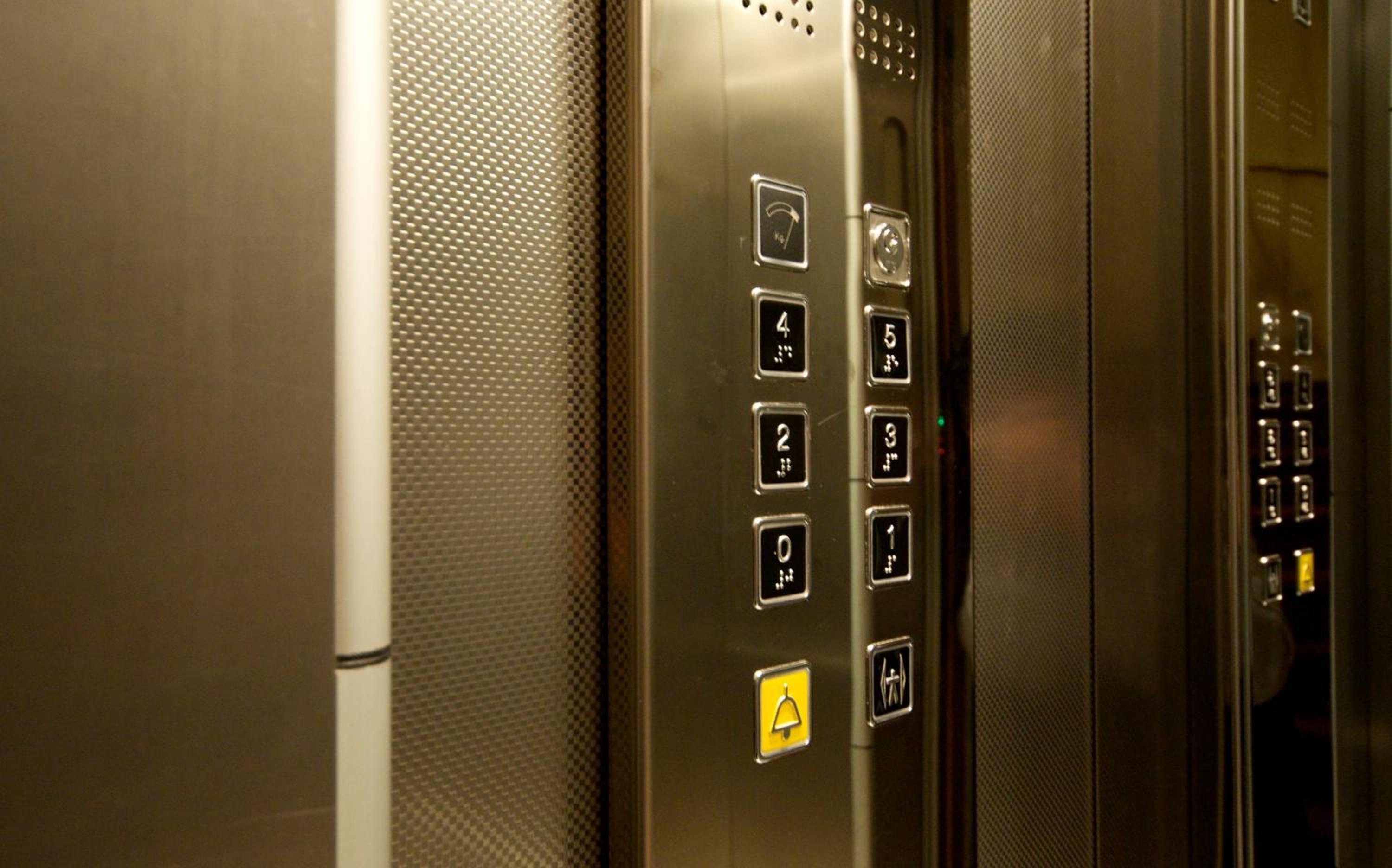 El ascensor pequeño aunque suficiente para subir una persona con su maleta