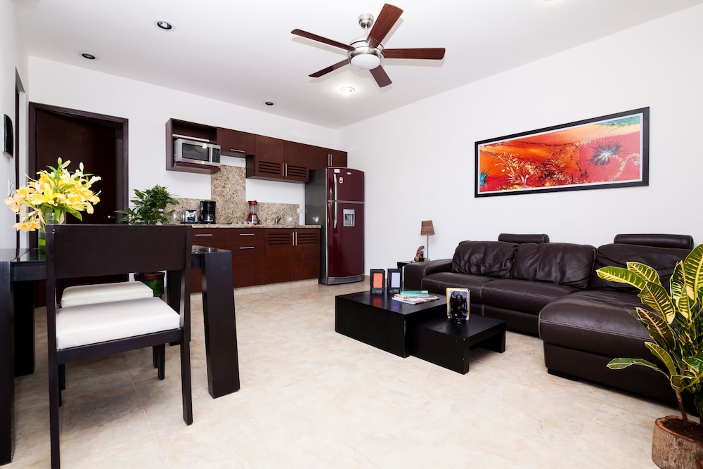 Relax in the air-conditioned rooms with kitchen amenities, private balconies, Smart TVs, and complimentary Wi-Fi. The prime location near Playa del Carmen Main Beach and Quinta Avenida ensures a memorable experience.