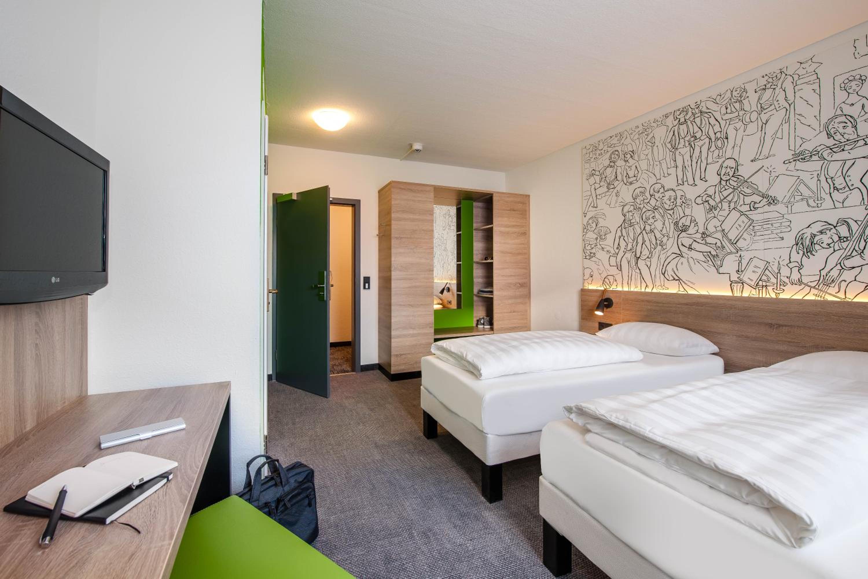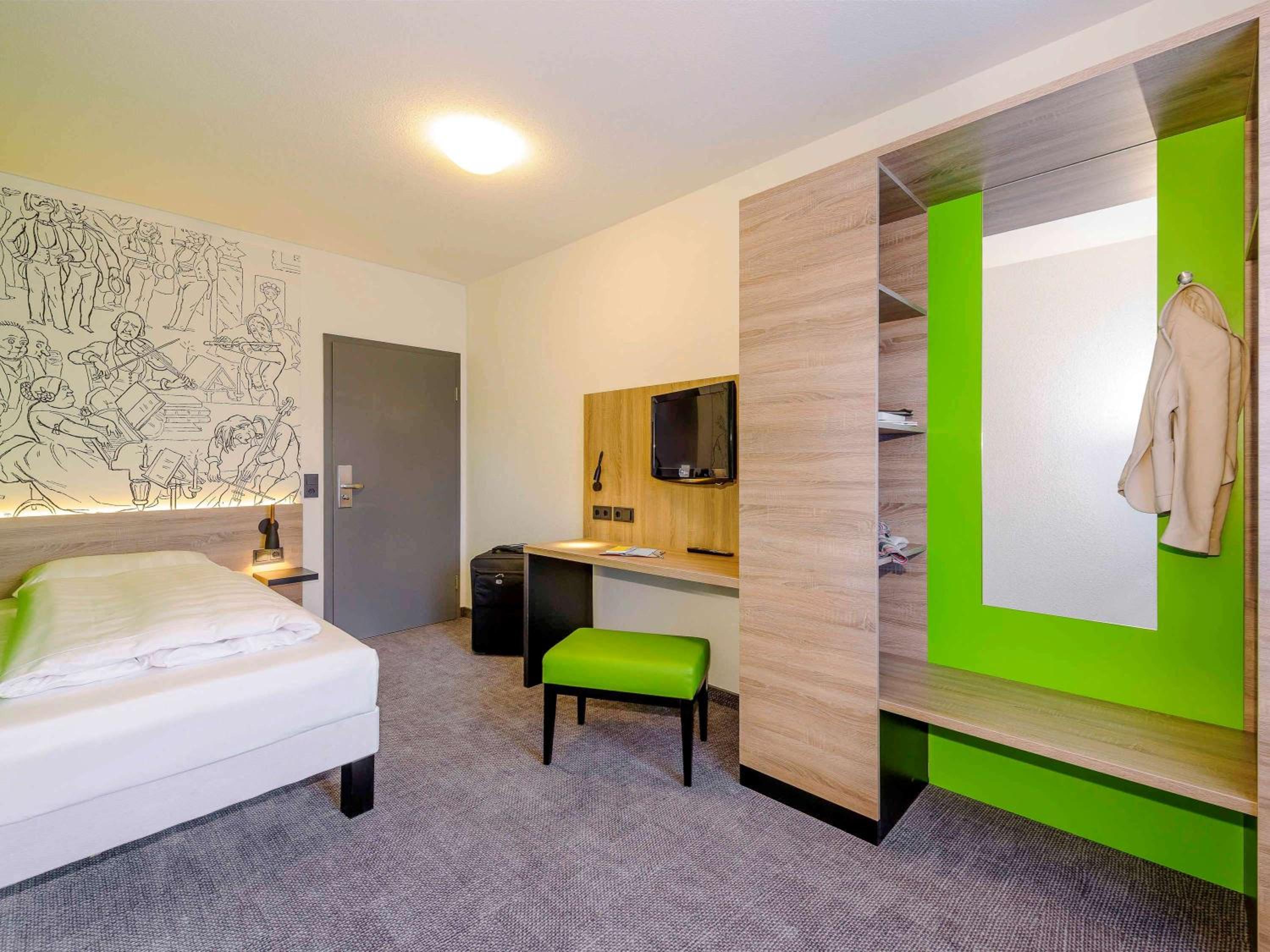 Experience comfort and convenience in our modern rooms at ibis Styles Halle, complete with spacious beds, work desk, flat-screen TV, and complimentary WiFi throughout the property.