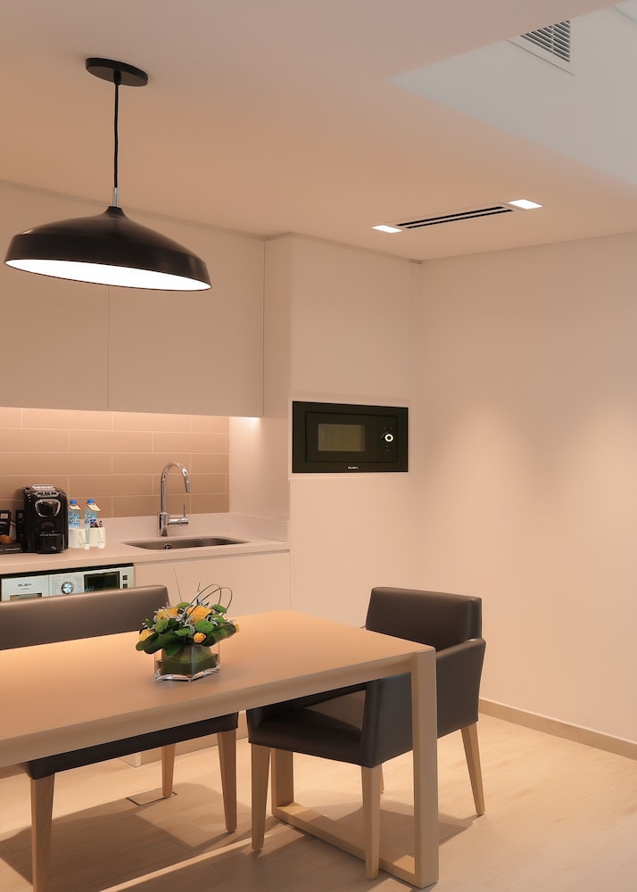 We booked a one bedroom superior apartment, which had everything we needed. A kitchen with fridge freezer, integrated microwave, cooker hob, kettle, toaster, washing machine, pots, pans, crockery and cutlery. The bell hop who showed us to our room, let us know that if we needed any additional kitchen items, to let reception know.