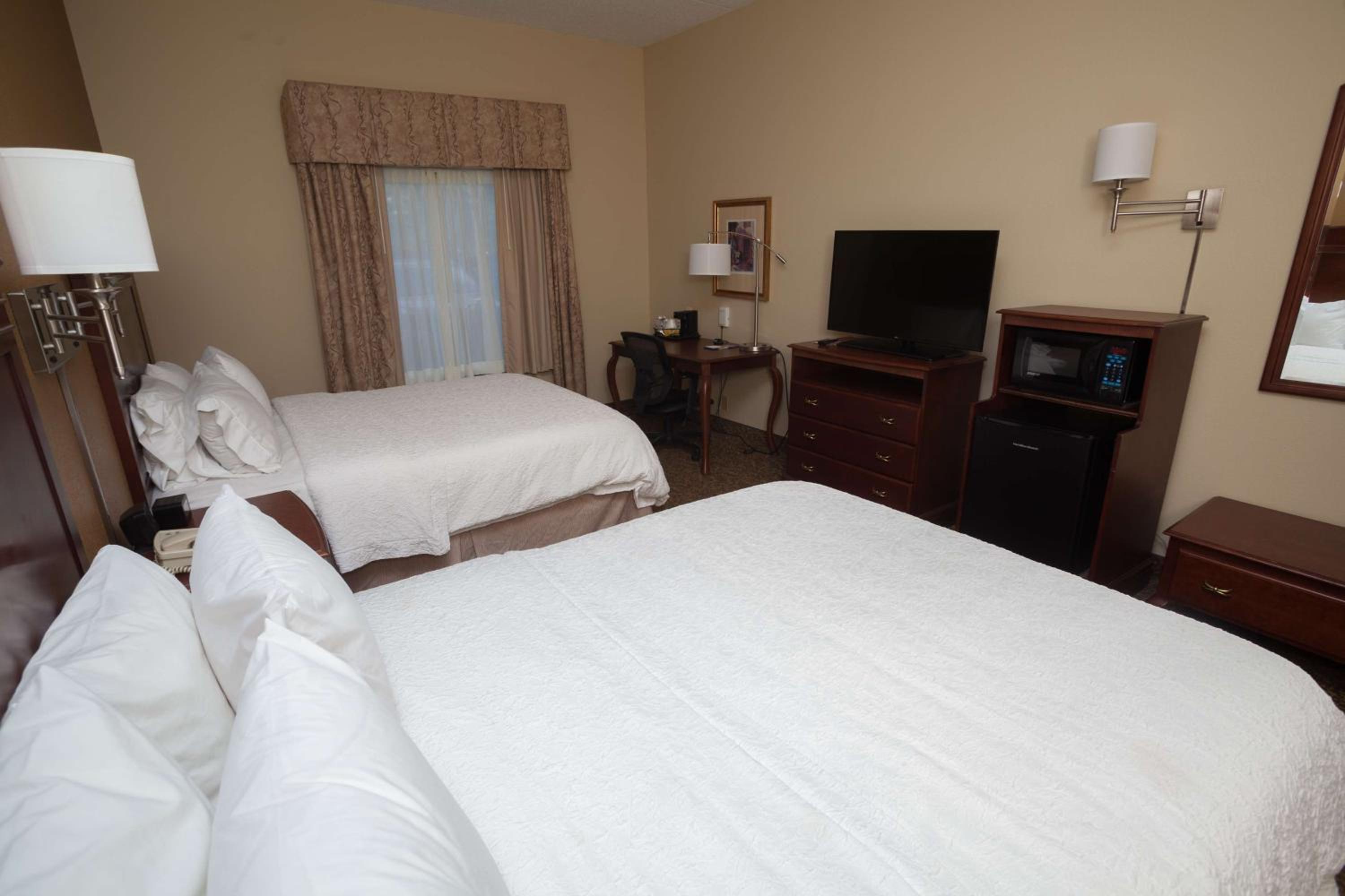 The spacious rooms at Hampton Inn Oneonta are equipped with convenient amenities including a microwave, mini-refrigerator, cable TV, work desk, and free Wi-Fi, ensuring a comfortable stay for all guests.