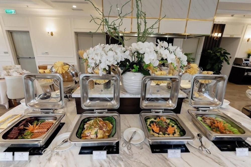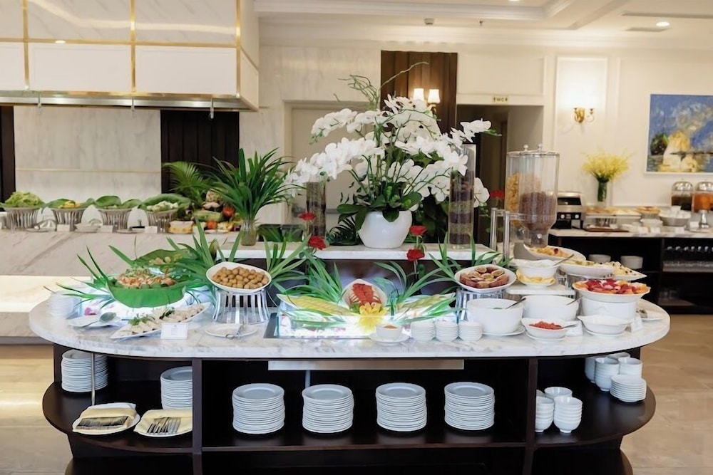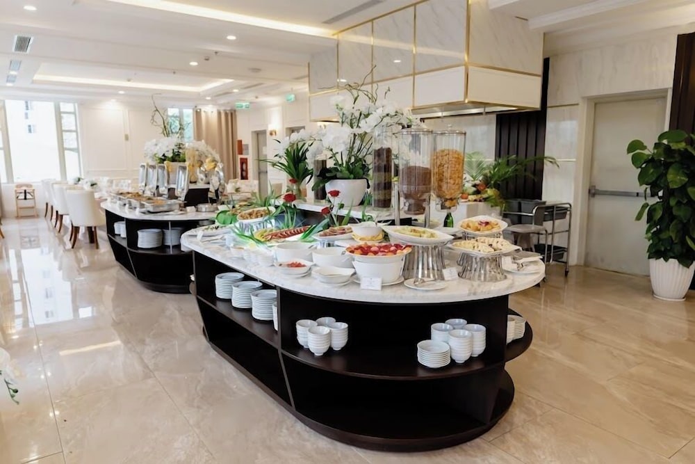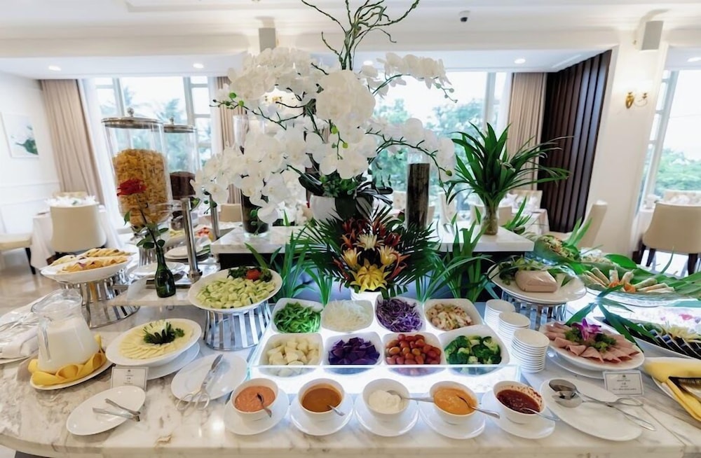 Terrible hotel. Poor selection on the buffet line Monotonous breakfast, three fruit selections, brewed tea bags, Vietnamese coffee in a coffee maker. Neither tea nor coffee is heated. Serve fried eggs with shells. Hard and smelly meat that cannot be eaten. One cheese to choose from, two stinky sausages. But there is a lot of bread: just rolls without filling. There are no desserts. Three types of cookies to choose from. It was very dirty: there were food residues on the floor, stains on the curtains and tablecloths.