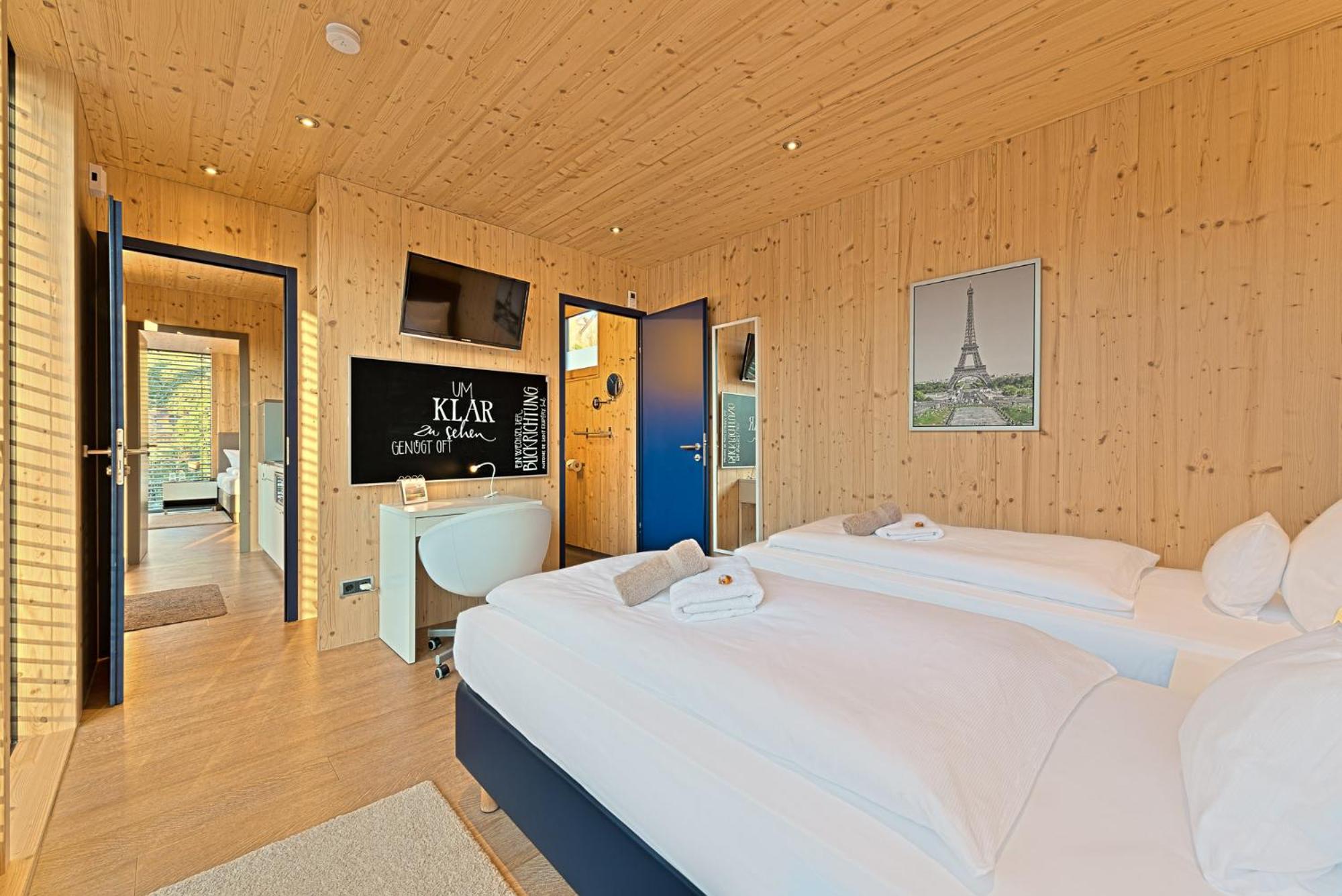 Nettes Hotel im Tinyhouse Stil. Alles sauber ordentlich und gut gepflegt. Im Bad fehlt Ablagefläche und am Bett im Dunkeln das Licht zu finden ist etwas schwierig. Sehr nettes Persobal und top Frühstück.