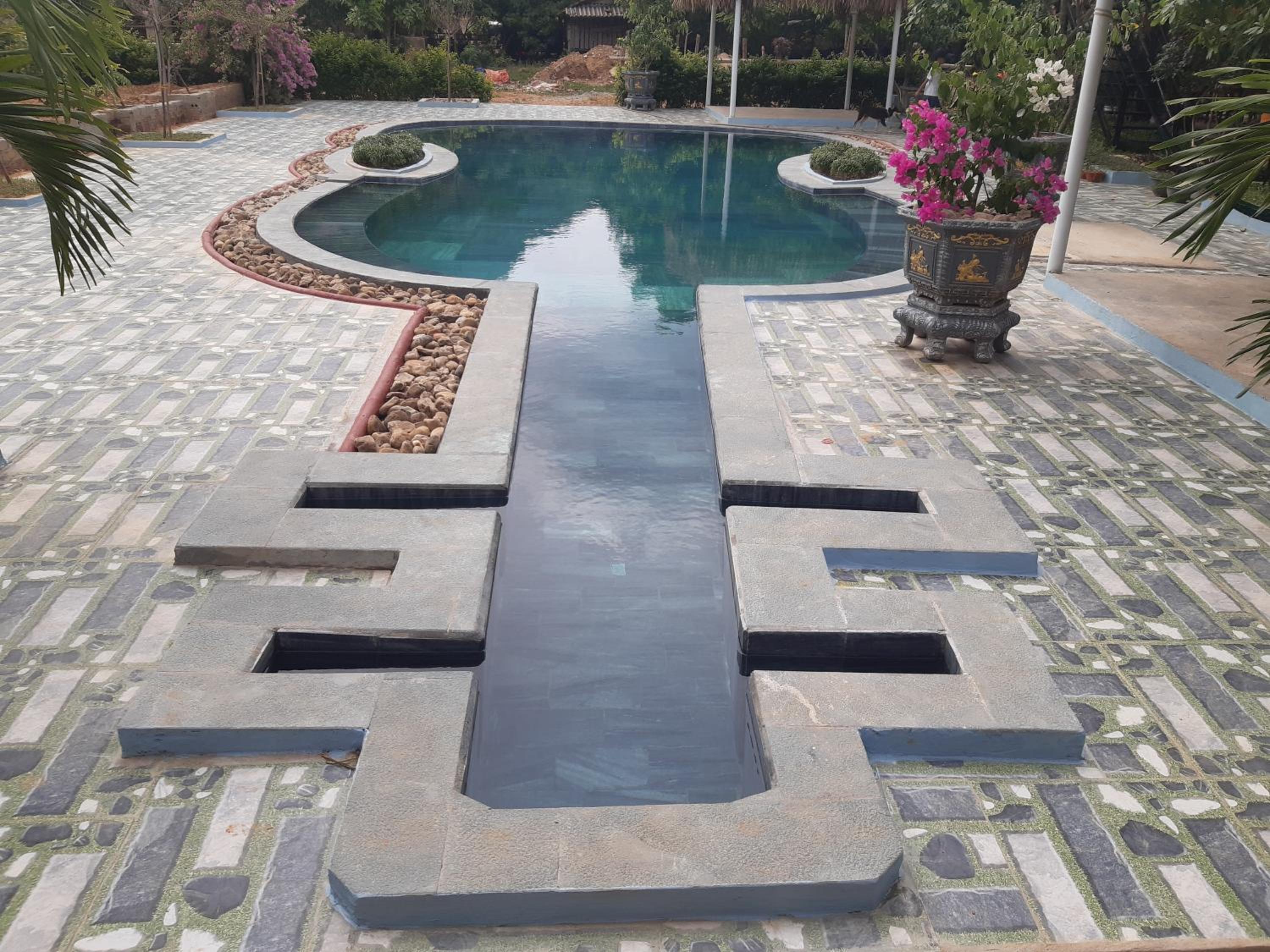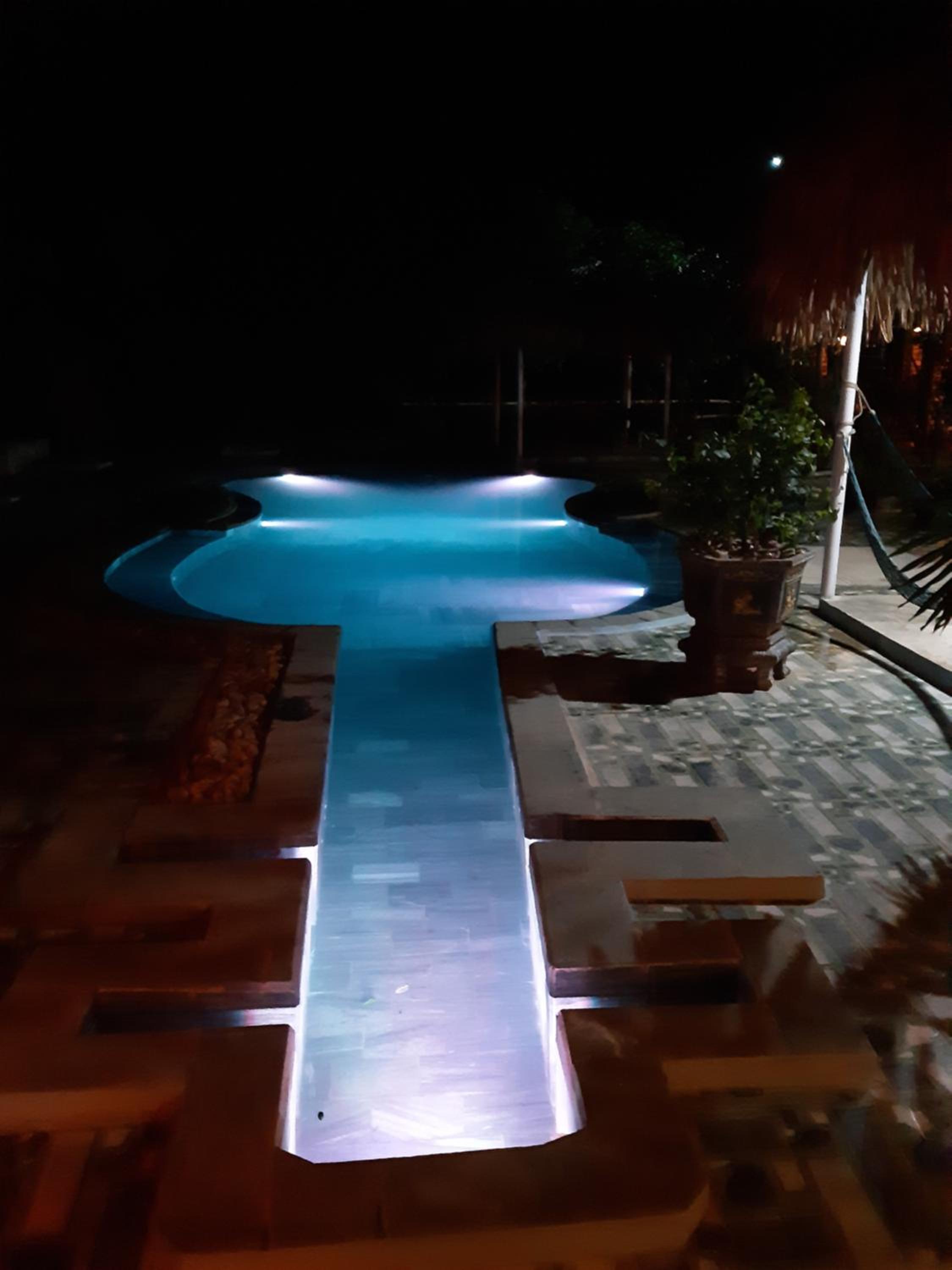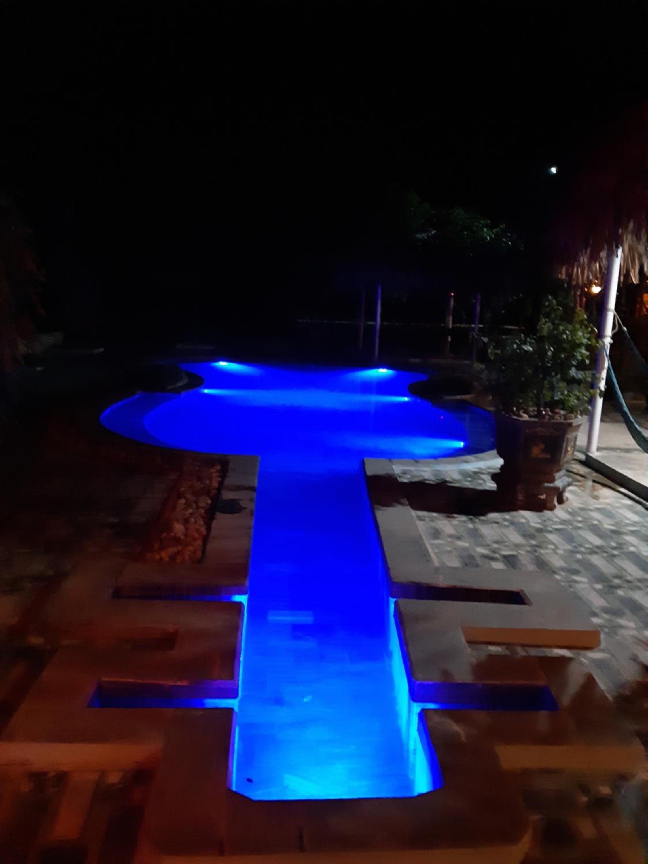 The pool is so clean and lovely, it was raining but still had to go in!