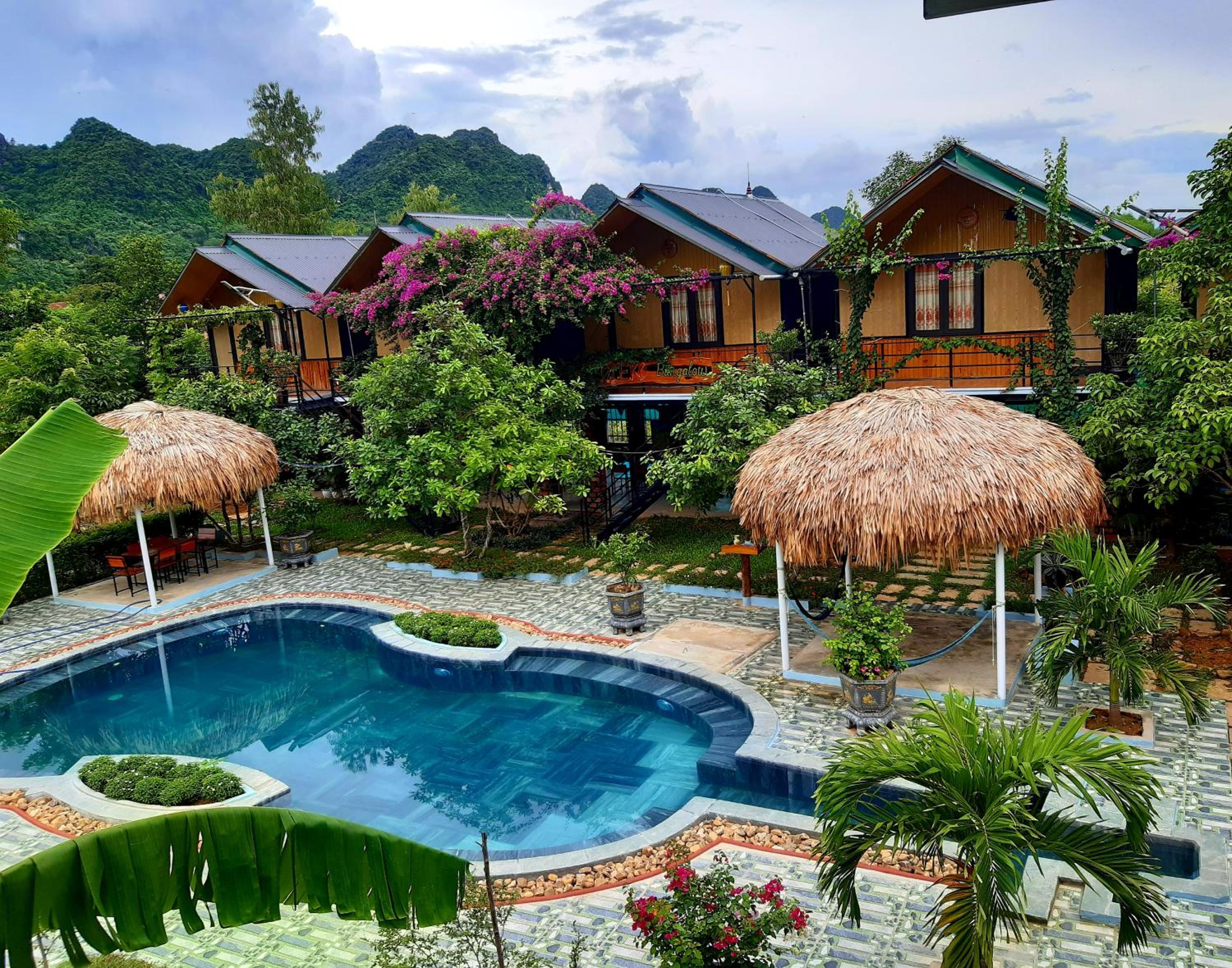 Enjoy stunning mountain and lake views at Phong Nha Bolero Bungalow. Relax on the balcony overlooking the lake or take a dip in the swimming pool while admiring the mountain scenery.