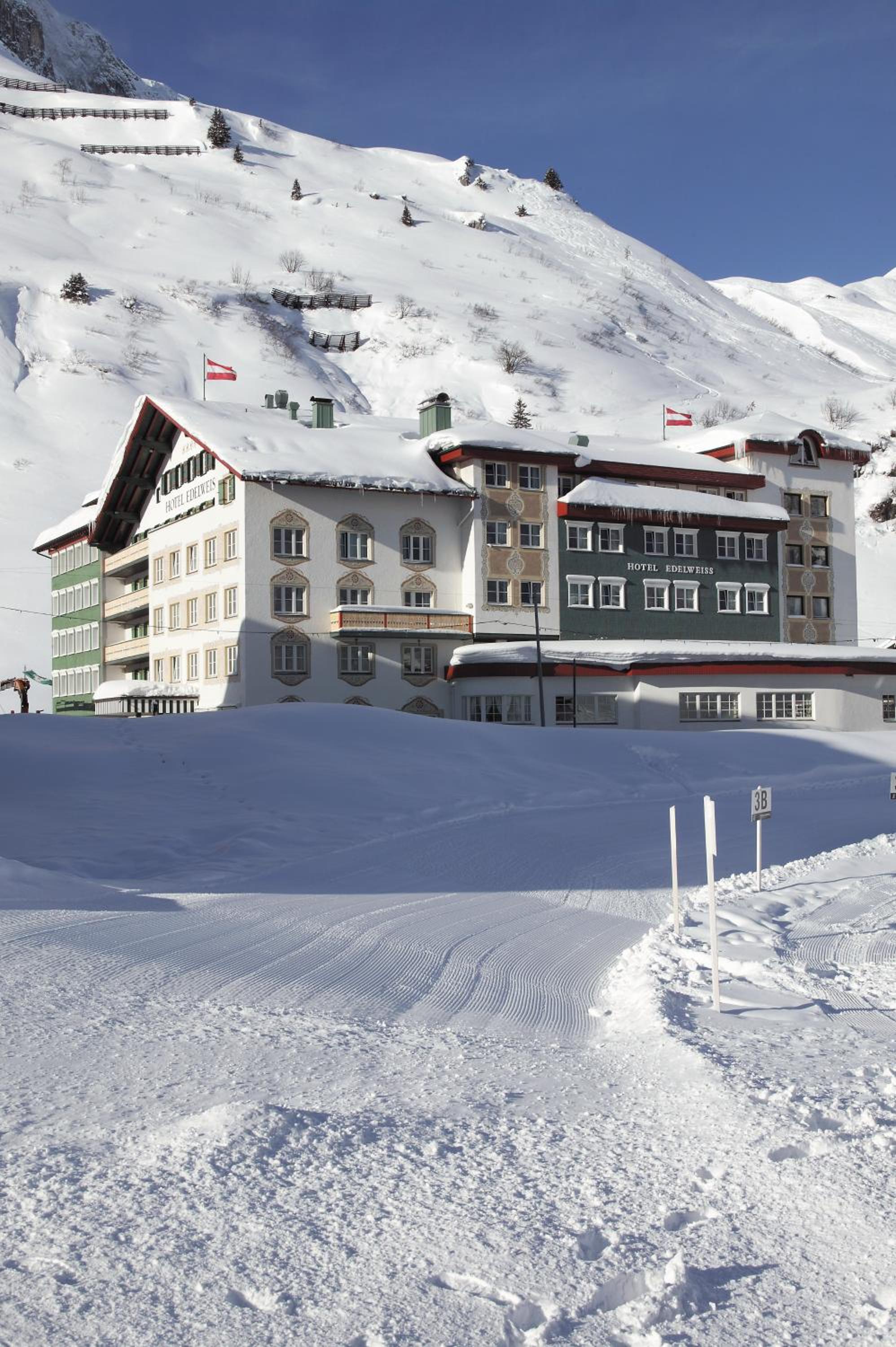 Hotel Edelweiss, centrally located in Zürs am Arlberg, offers a cozy stay with slopes right at your doorstep. The lovingly furnished rooms feature satellite TV and private bathrooms, ensuring a comfortable retreat after a day of adventure.