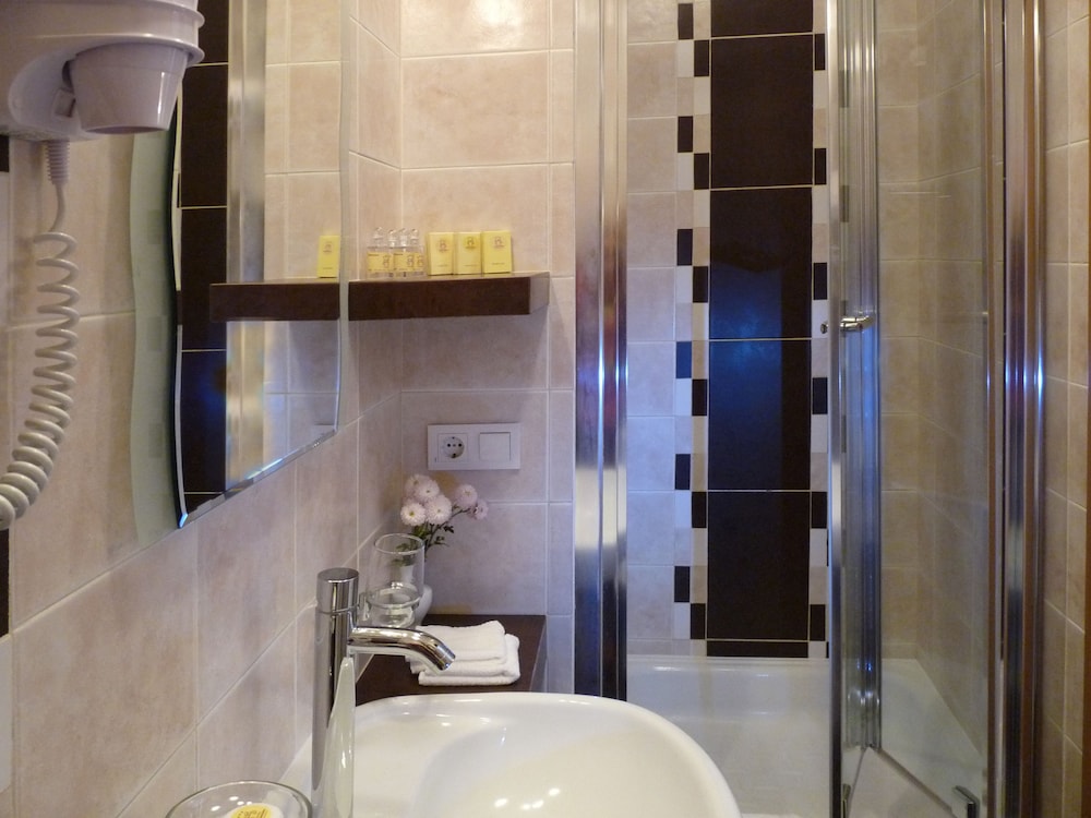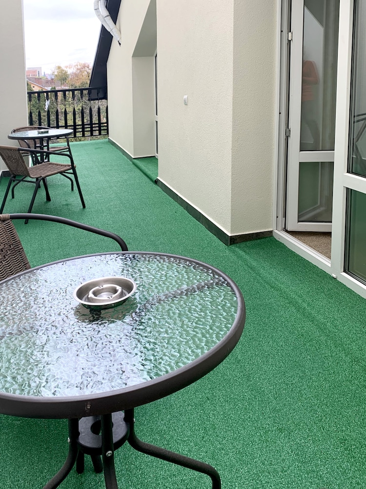 The hotel is in a great location, just a 10-15 minute walk from the city center. Best of all, there are signs pointing back to the hotel everywhere - a great surprise for someone who doesn't speak the language! The room was small but very nice with a small balcony that included a table and chairs overlooking the pool. The clerk that was on shift when we arrived was very friendly, spoke excellent English, and even made me a cup of coffee when I woke up before the kitchen opened. Breakfast was excellent and not just because it was included. Highly recommended.