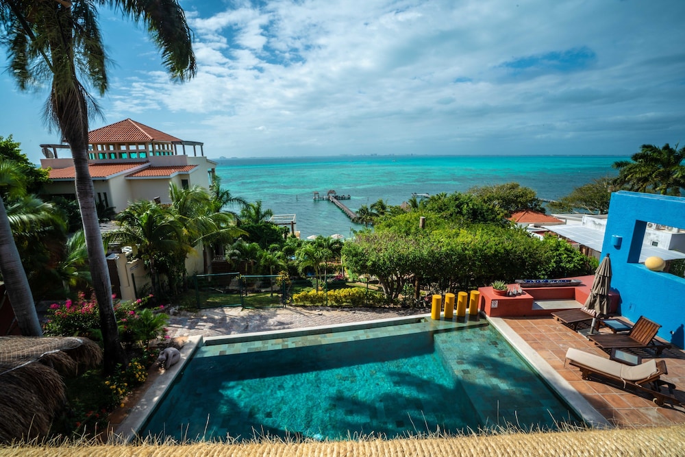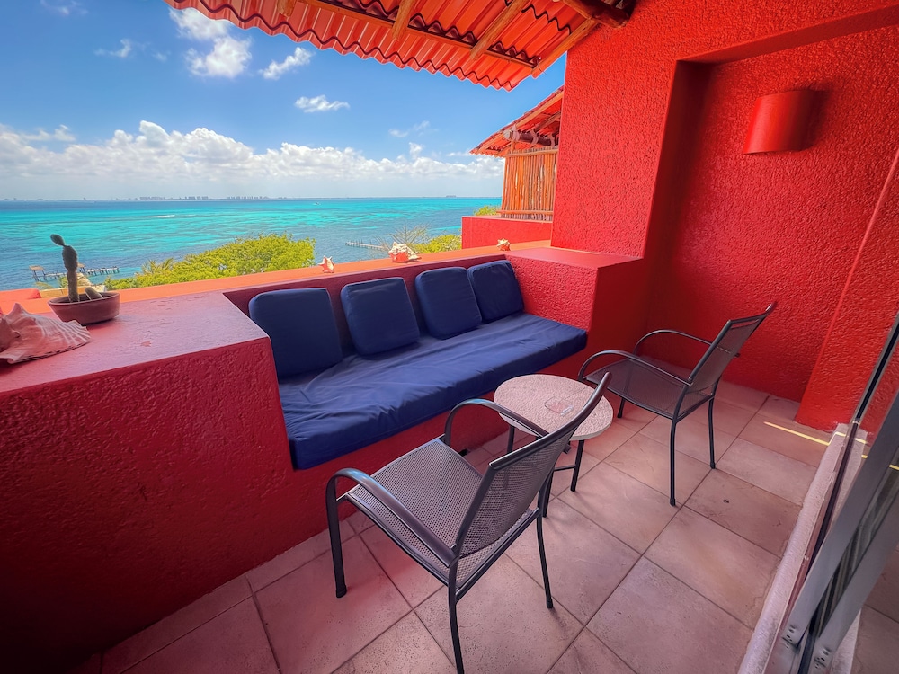 This hotel has the most amazing view in Islas Mujeres! Hotel is anazing quiet, and romantic. We were the only guest. We stayed in the El Sol room, amazing view and from the balcony you can access the pool. The staff was amazing and prepared the best lobby coffee ever! Only bad thing was that we spent an entire day without water nor electricity due to improving the electricity in the island which is a good thing. We rented a Golf cart which is the best transportation option in the Island.