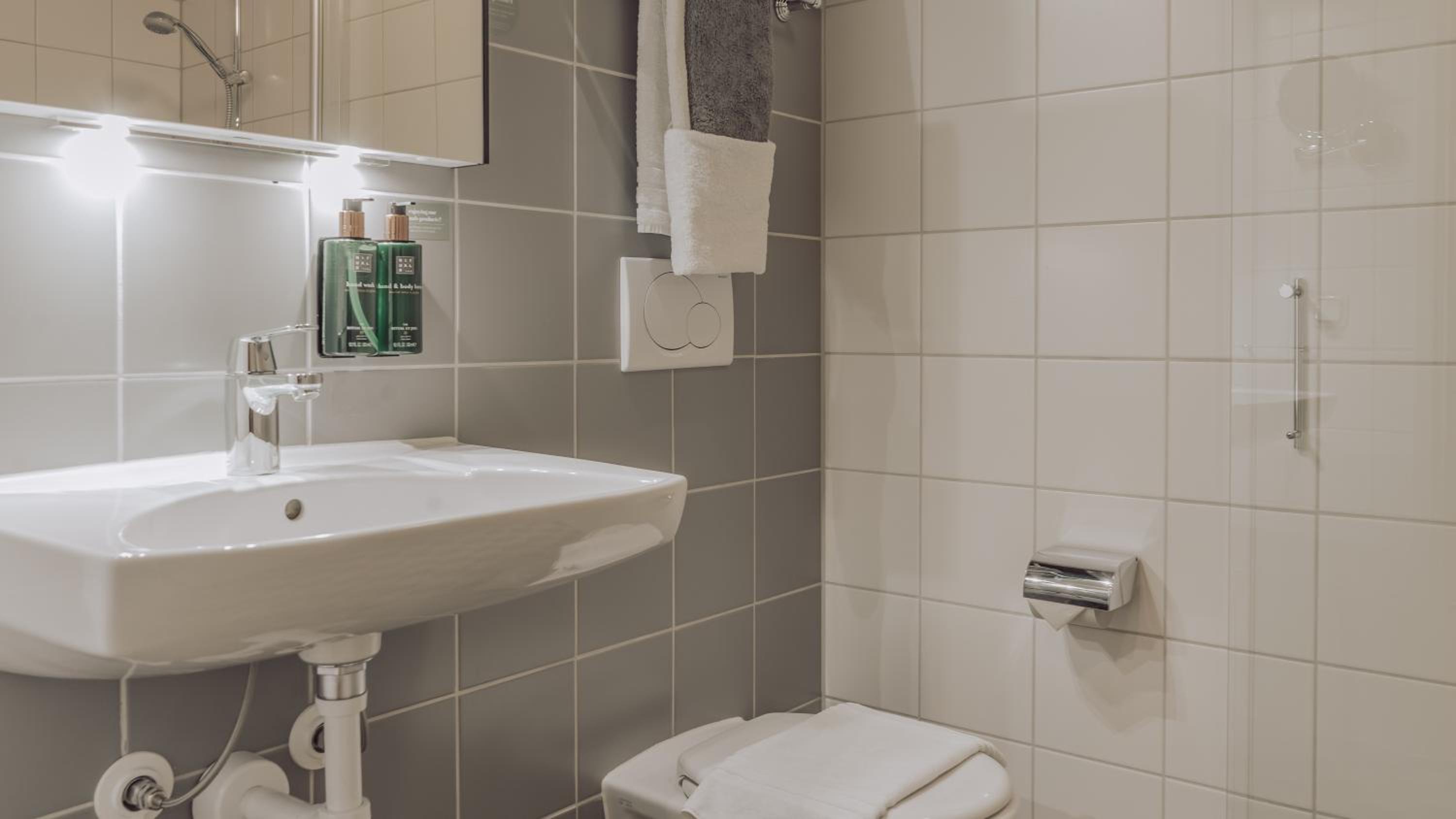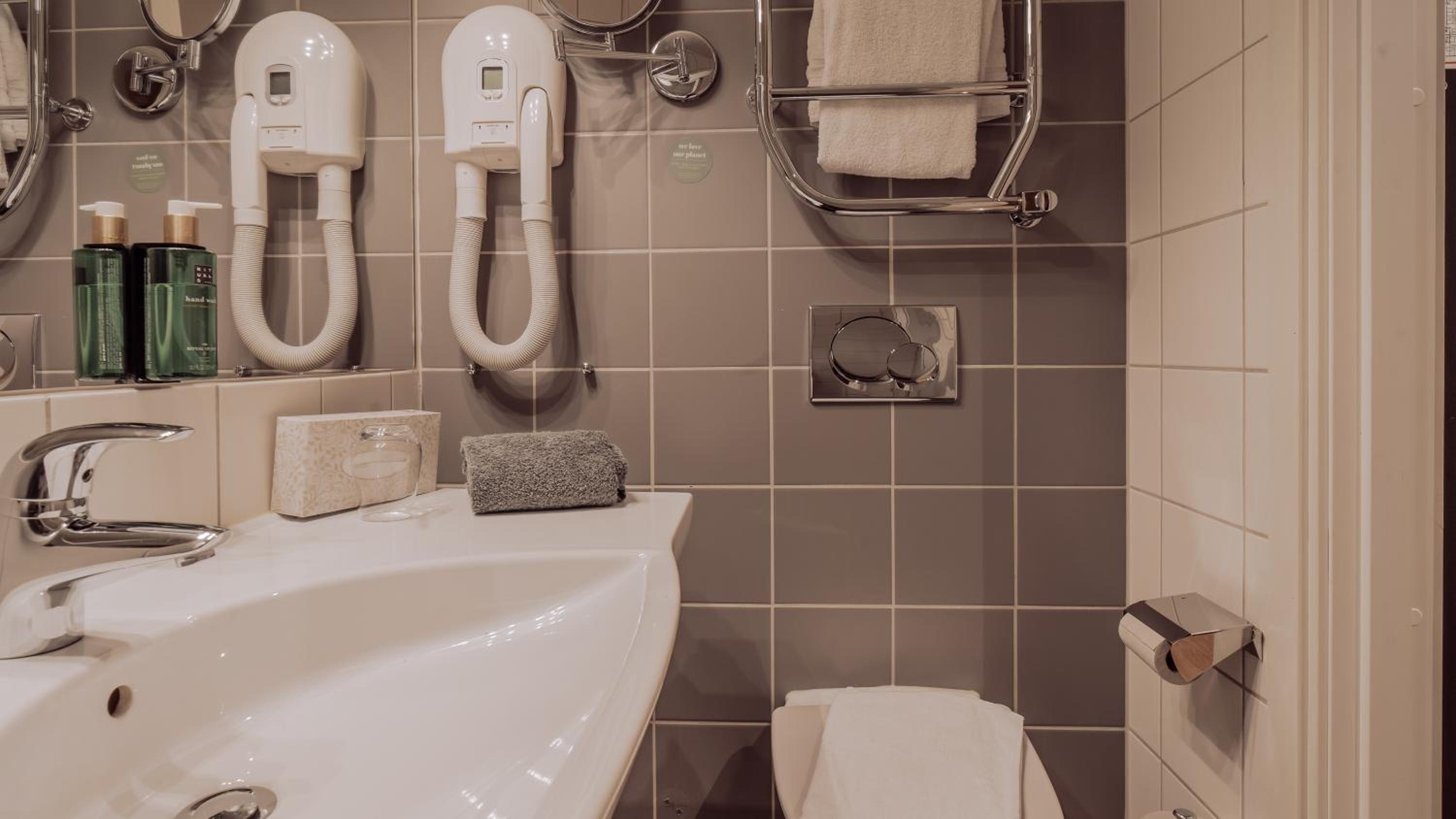 Fick en uppgradering till ett jättefint stort rum med både badkar och en dusch. Skön säng , sov som en stock hela natten.