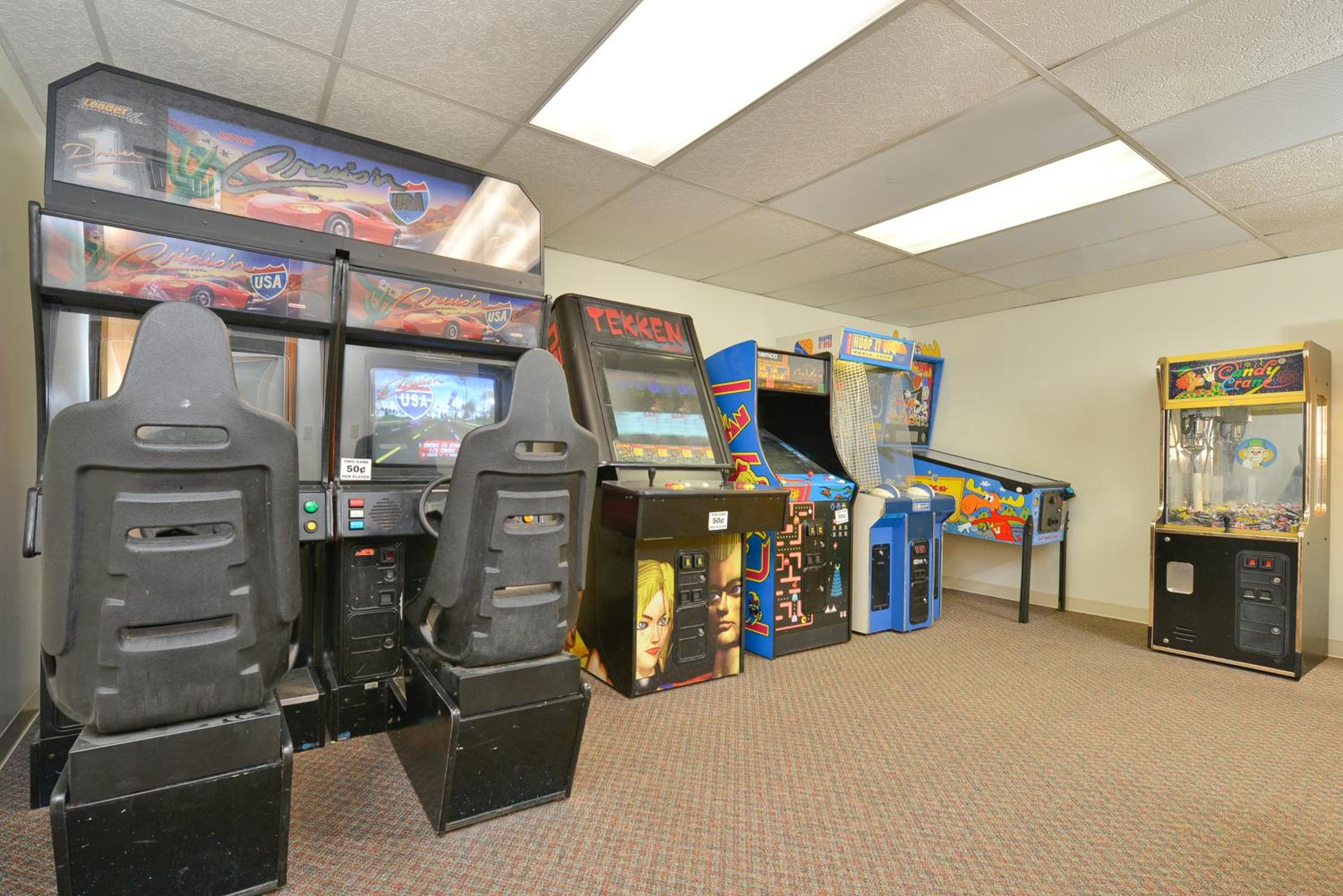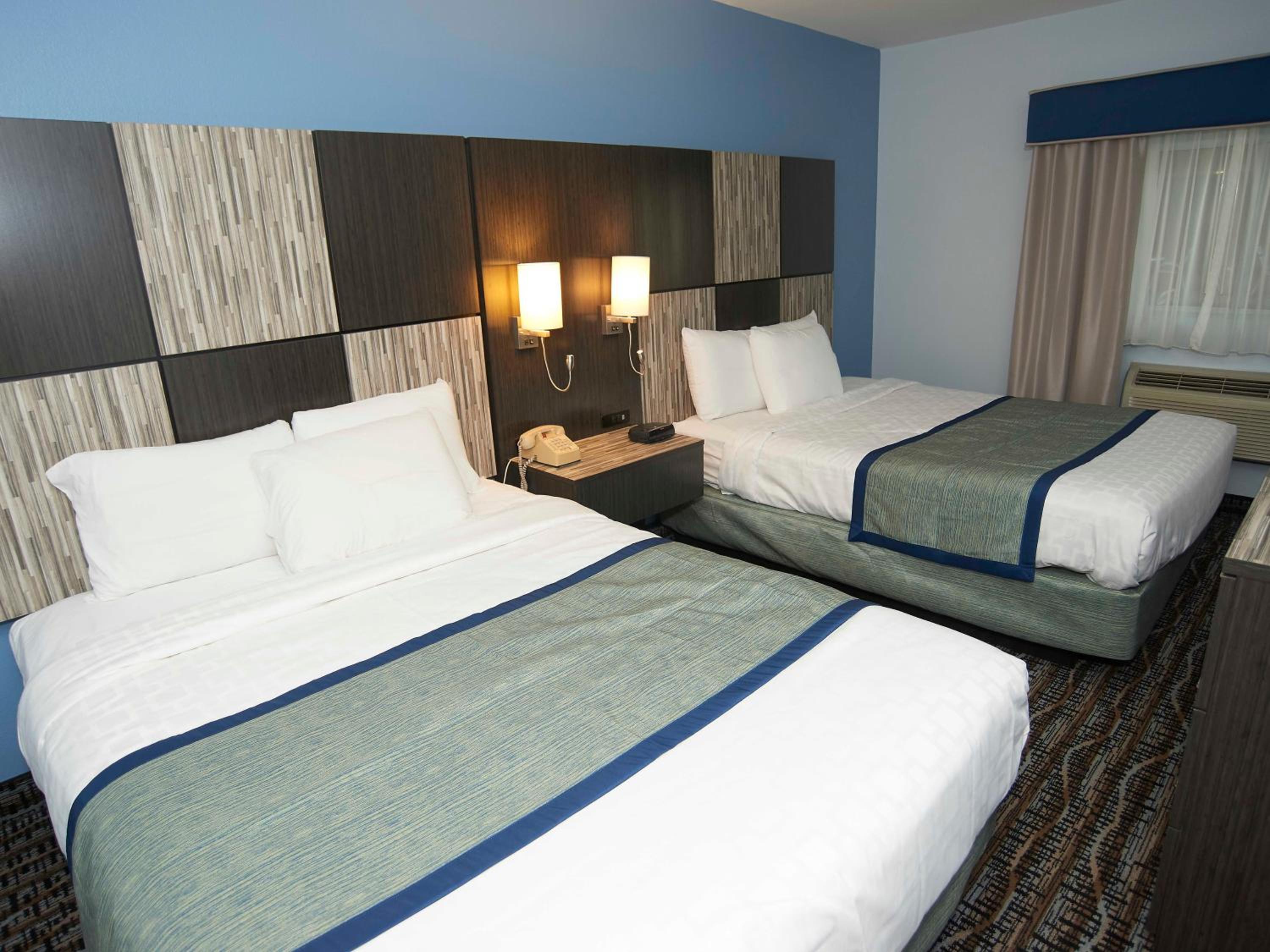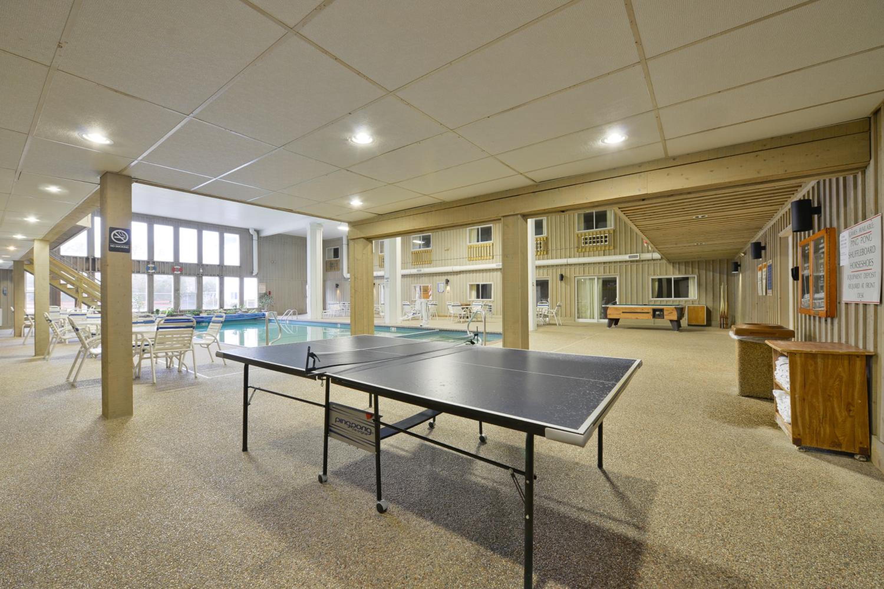 Indulge in the convenience of in-room microwaves and mini-refrigerators, stay connected with free Wi-Fi, and unwind at our indoor and outdoor swimming pools. For entertainment, enjoy our on-site arcade and savor delicious BBQ meals using our outdoor grill facilities.