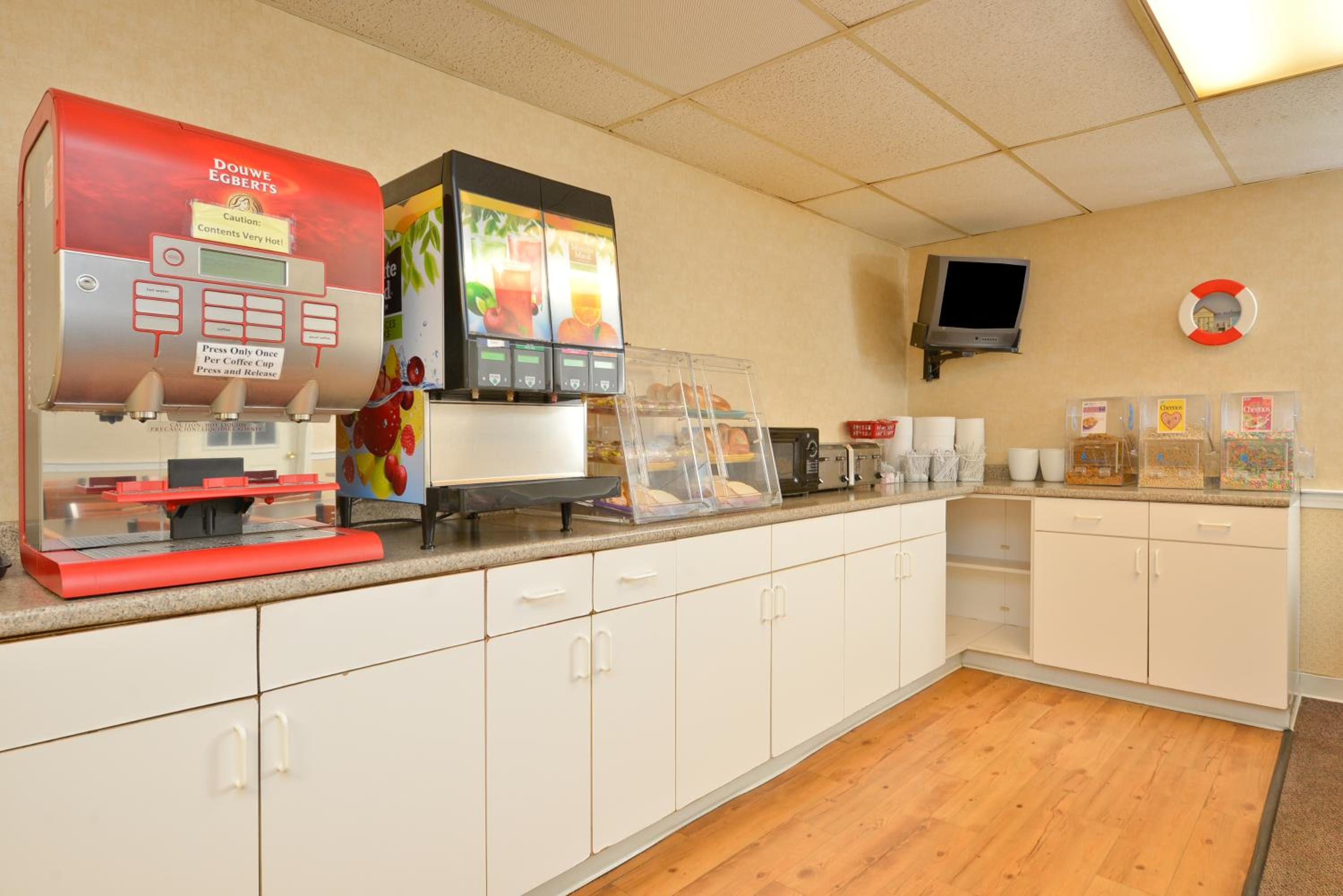 Our room was very clean and spacious, with a kitchenette that we didn't use. Bed was very comfortable. Breakfast was good to have before we hit the road.