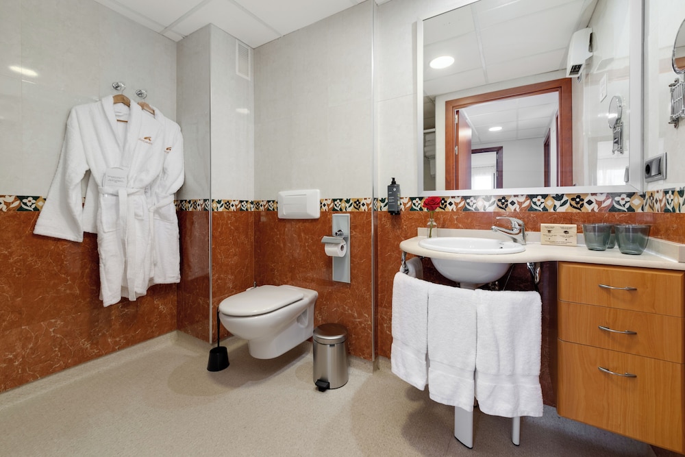 Servicio muy amable, muy buen desayuno, a pesar de que había mucha gente. La piscina muy bien y sin ningún problema para tener hamacas. Las camas muy cómodas y la habitación muy amplia. Por poner algún pero, quizá se podría actualizar el baño, con un lavabo más grande y un poco más de encimera. Pero es un mal menor, ya que cumple su función a la perfección, con espacio suficiente y una amplia ducha. Una gran estancia, para repetir.