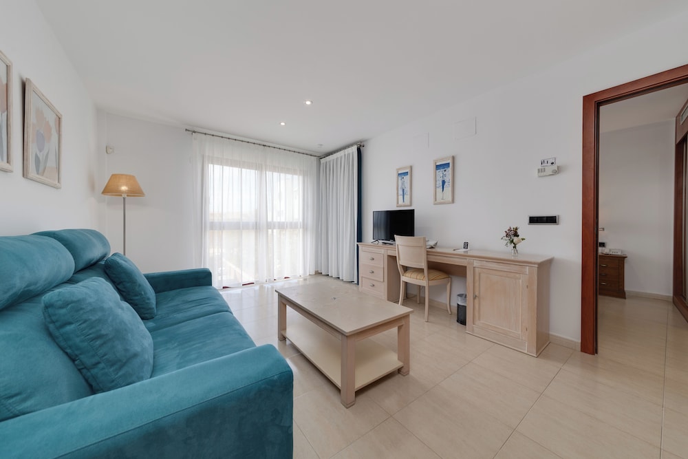 Perfect apartment for our family of 5. Rooms cleaned and sheets changed daily. Air con and fridge in main room. Large balcony overlooking the pool.