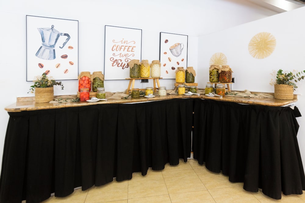 We had breakfast at the hotel and it was excellent, with plenty of choice and very good options for healthy and hearty eating. The pool area is attractive and clean, the water was a pleasant temperature in early July. The bar is pleasant and drinks prices reasonable, comparable with local bars. There is a varied programme of activities for adults and children throughout the day in high season.