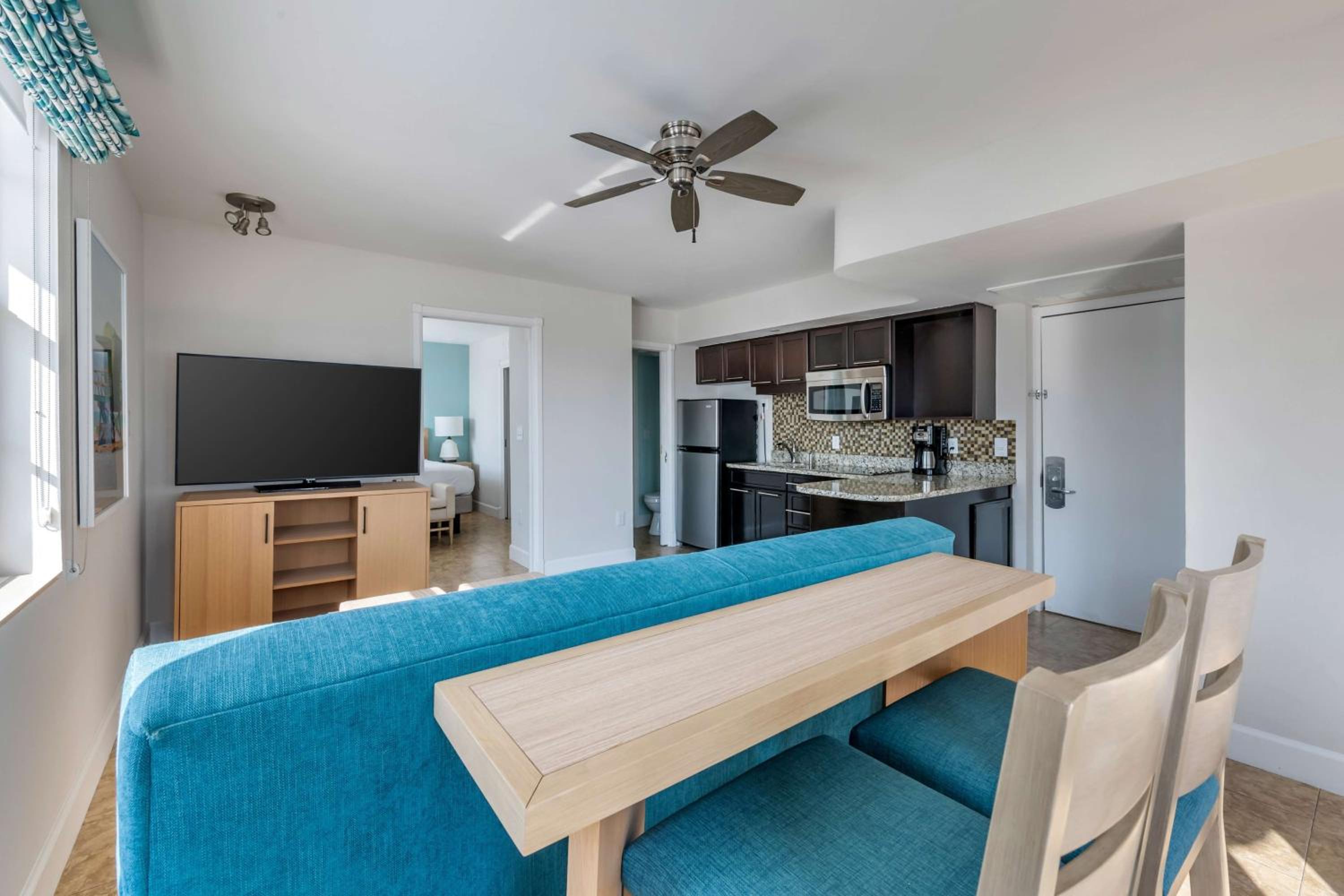 This was much more than just a hotel room - we stayed in a suite that included a fully equipped small kitchen and a living room area with a gorgeous view of the beach. Having the kitchen was incredibly convenient and made our stay feel more like home.