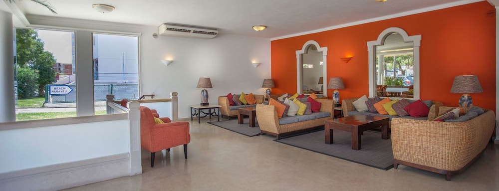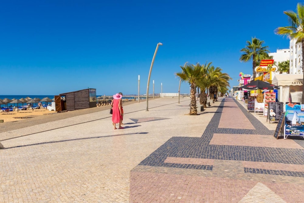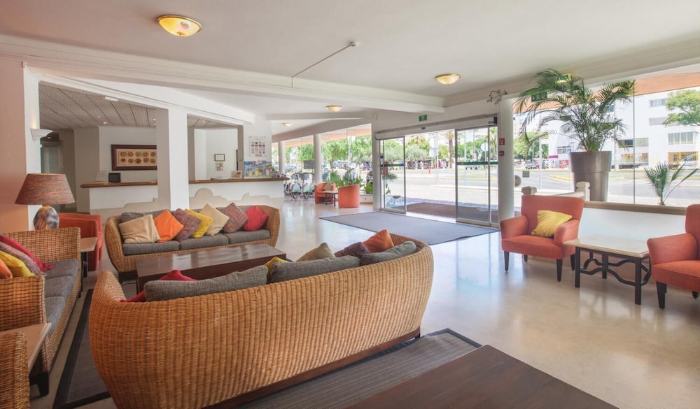 Good points: the staff. Politeness and manners cost nothing, and every one of the staff were so nice to us. They are happy to serve, help and even just chat to you about anything. They are happy hotel perhaps is a bit dated, but the bed are comfy, the pool and sun loungers are clean and the area in the bar and reception etc is clean also. The location is spot on, you are 2 mins from the beach and 14euros to the airport, and also Albufeira. The marina (the big one) is amazing too and not far.