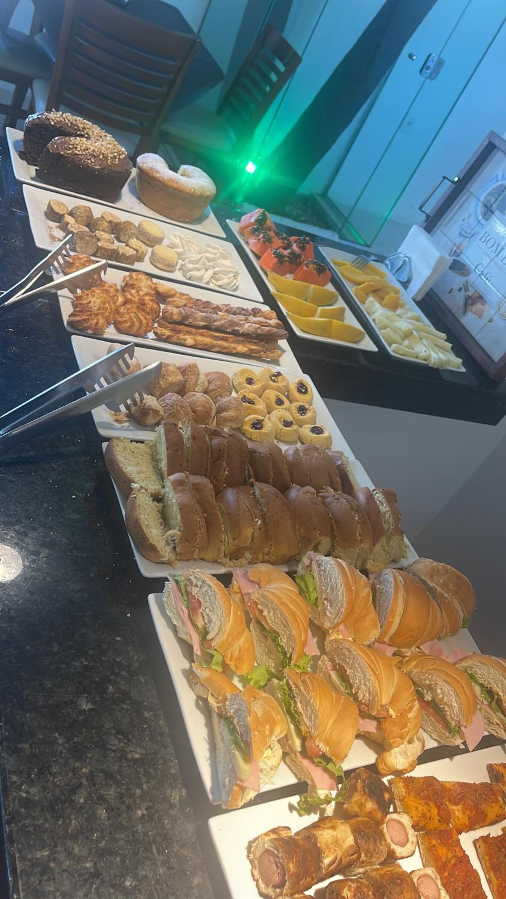 Start your day with a delicious buffet breakfast in our breakfast room, featuring a spread of fresh fruits, breads, cold meats, and a selection of hot and cold beverages.