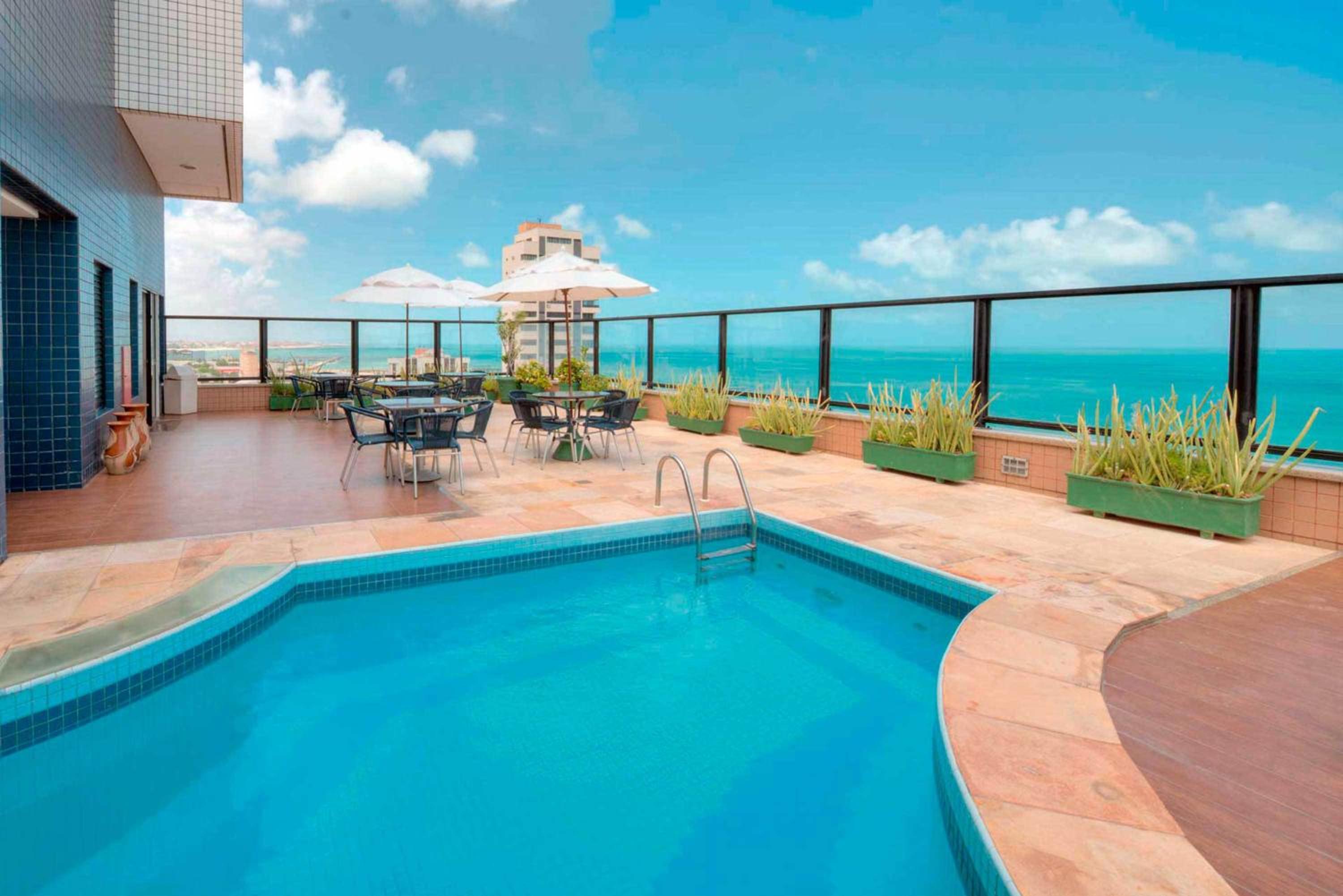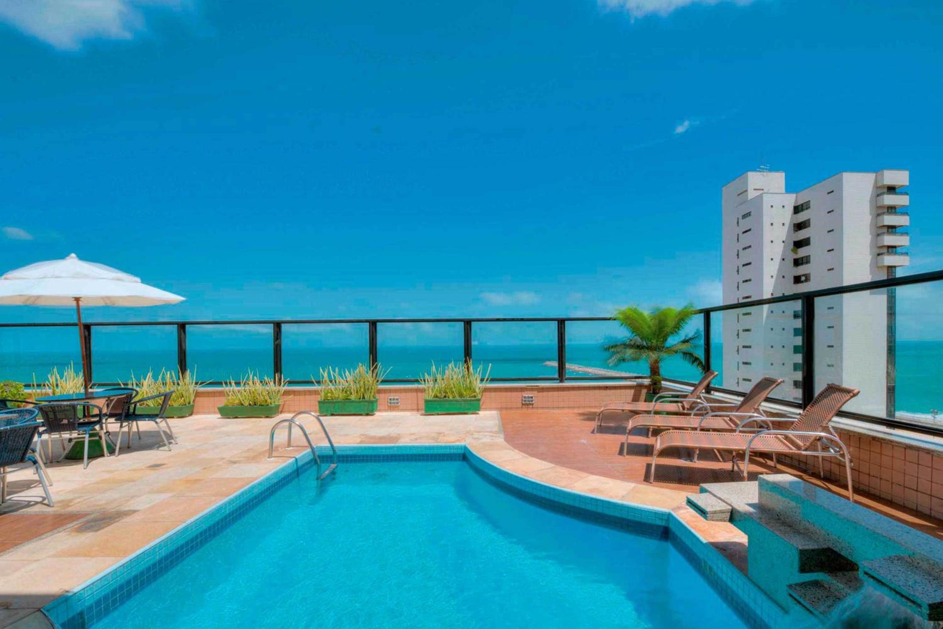 Gostei da localização, da vista do quarto para o mar e da piscina na cobertura