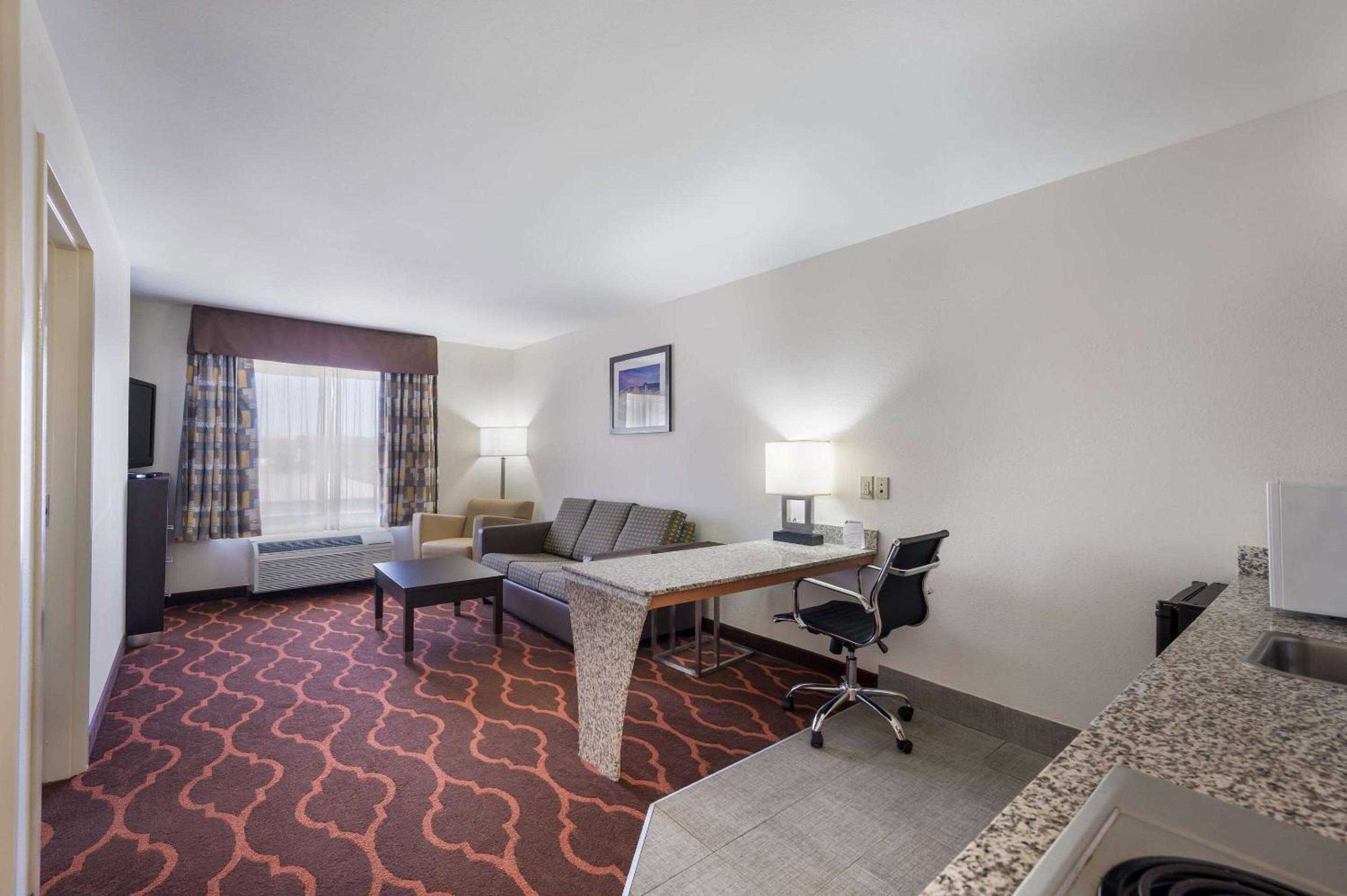 Enjoy the comfort of well-equipped guest rooms featuring 42-inch flat-screen TVs, free WiFi, and convenient kitchen amenities. Whether you're relaxing by the outdoor pool or catching up on work at the business center, this hotel ensures a seamless stay for all guests.