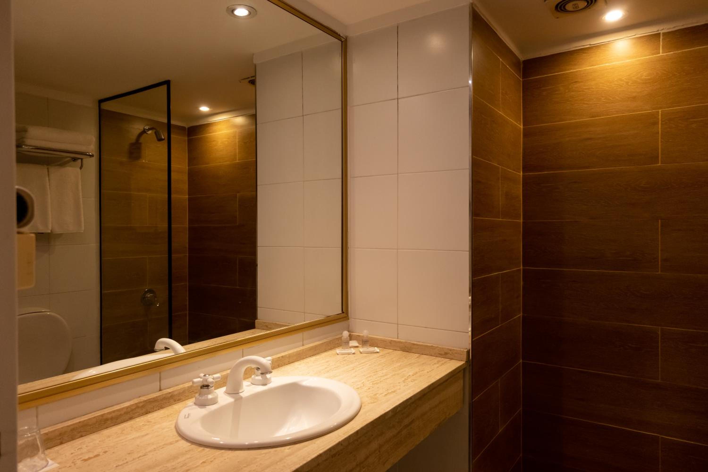 Poca iluminación en la habitación una sola mesa de luz en la cama matrimonial el tv no funcionaba reclamamos y no lo solucionaron el estacionamiento esta al lado pero el que pertenece al hotel hay que bajar 4 rampas super angostas es mejor el parking enfrente