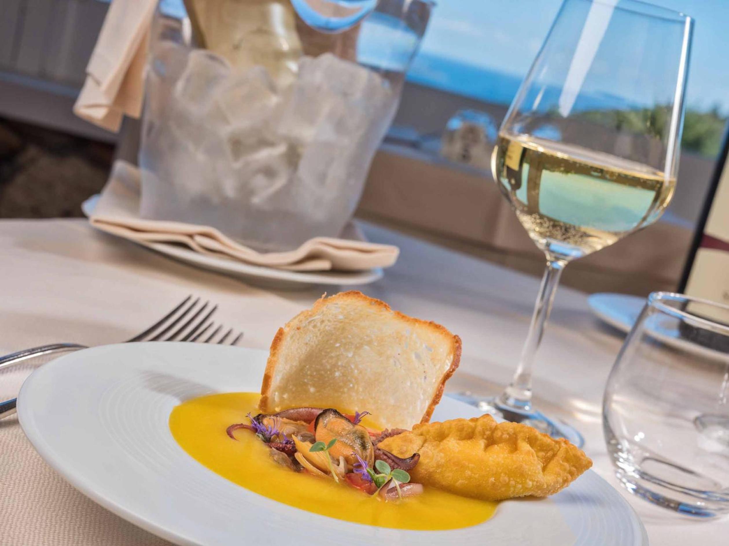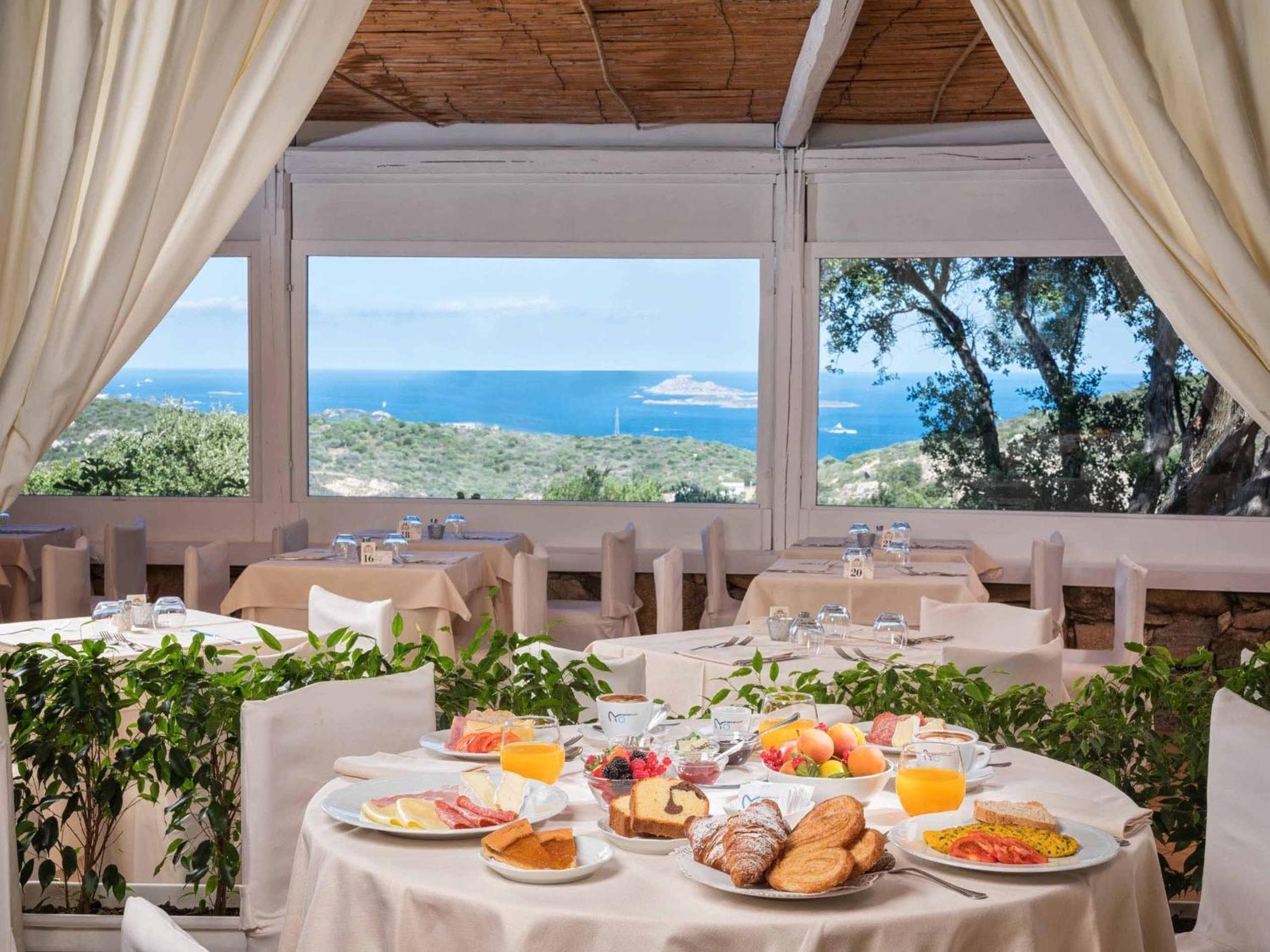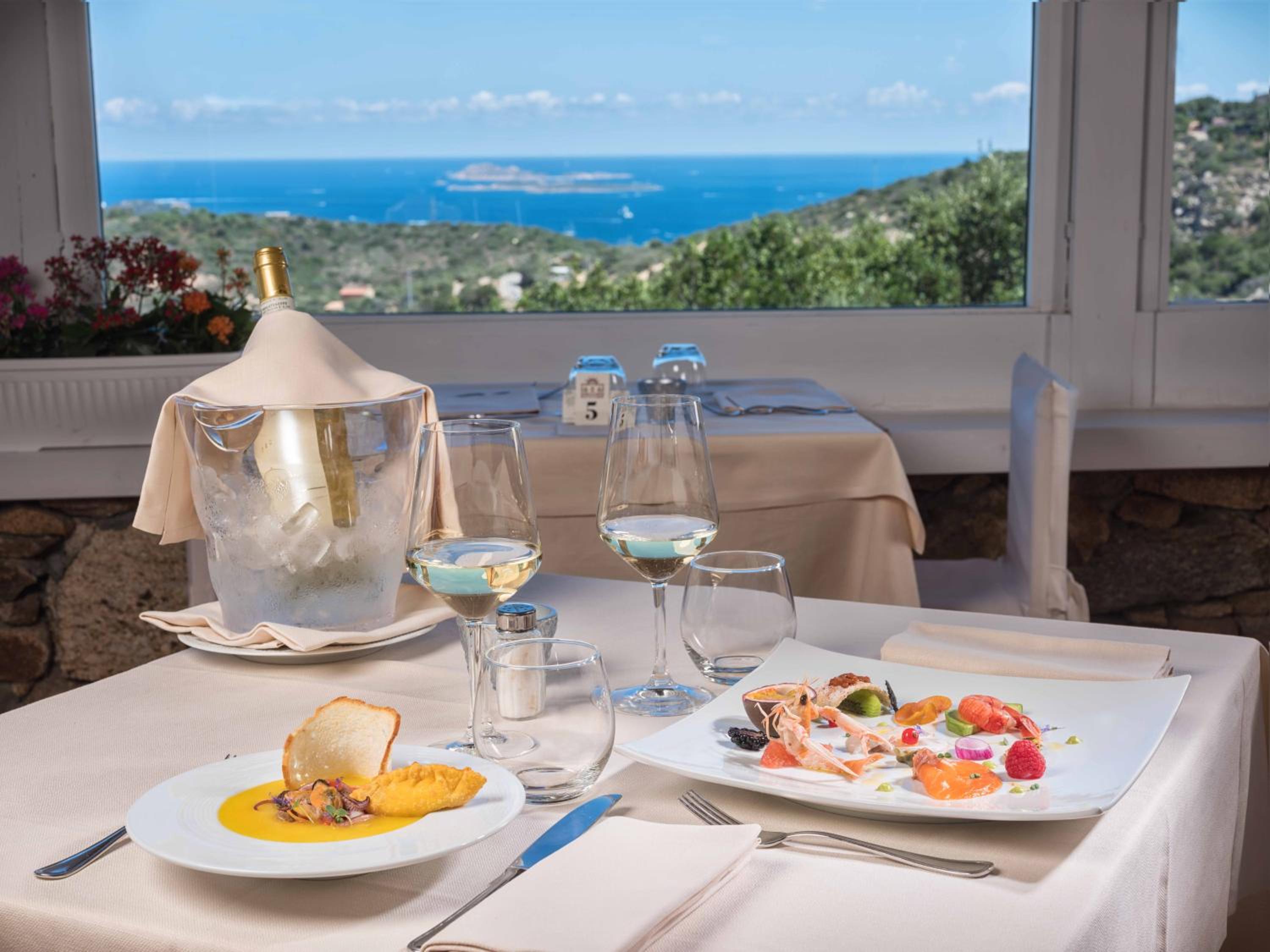La cena non ci è piaciuta purtroppo. Entusiasti dell’eccellenza del posto e dal relax che si respirava abbiamo deciso di usufruire della cena in hotel, menù 50 € a persona bevande escluse. Purtroppo però non era affatto eccellente: il buffet dell’antipasto non era molto ricco, diverse ricette avevano la ricotta un po’ troppe per noi; il primo di pesce che abbiamo scelto erano trofie alla nerano con crostacei ma si sono rivelate con uno scarso pesto di zucchine e i crostacei erano tra gamberetti di quelli minuscoli; il baccalà del secondo con chips di pane non pervenute e decisamente troppo salato; speravamo finalmente nel dolce, la seada ma siamo rimasti estremamente delusi: quando è arrivata pensavo fosse un extra, piccola e rigonfia con zucchero a velo sopra mentre la seada prevede miele o zucchero semolato e sarebbe buona norma chiedere cosa si preferisce, una volta tagliata però ancora peggio, il formaggio era acido e salato non quello lavorato dolce della sarda ed era grumoso e non filava. Essendo sardi per me assolutamente una negatività da segnalare perché uno dei dolci più buoni della nostra tradizione è stato stravolto. In più, nel ristorante esterno nel mentre veniva servita una cena sarda e pensare che gli ospiti assaggiassero quella finta seada era veramente imbarazzante. Sono rimasta veramente dispiaciuta di ciò. In compenso colazione top!