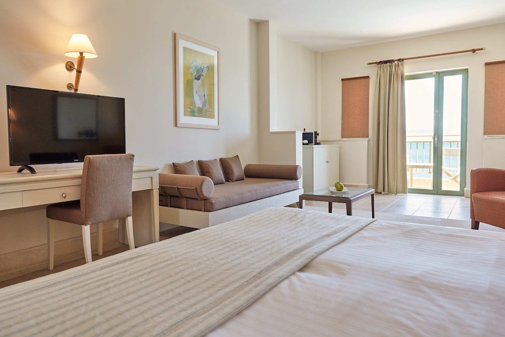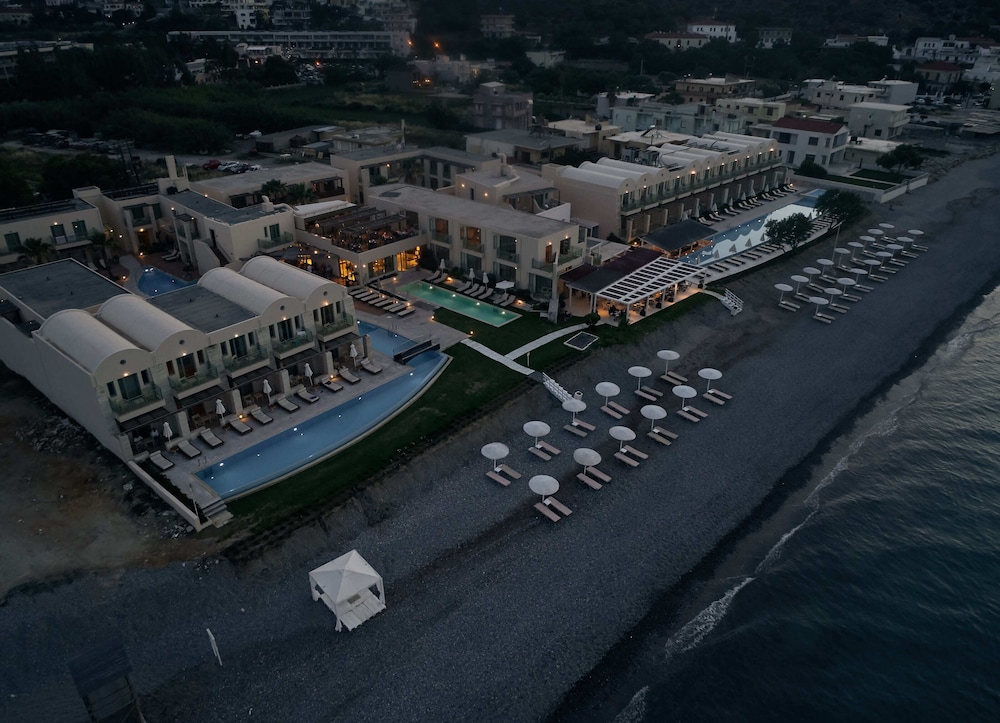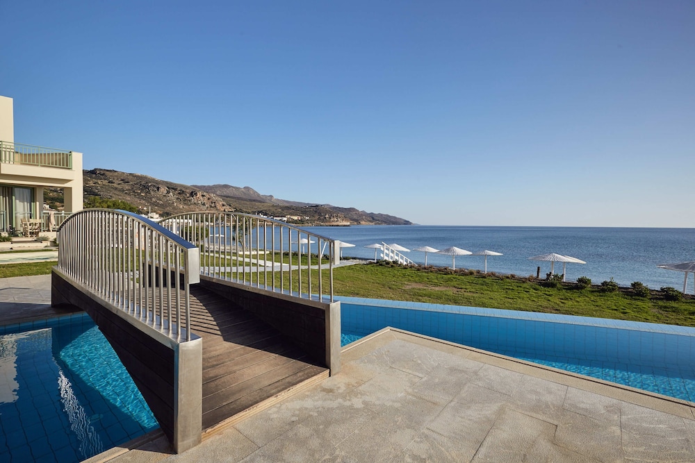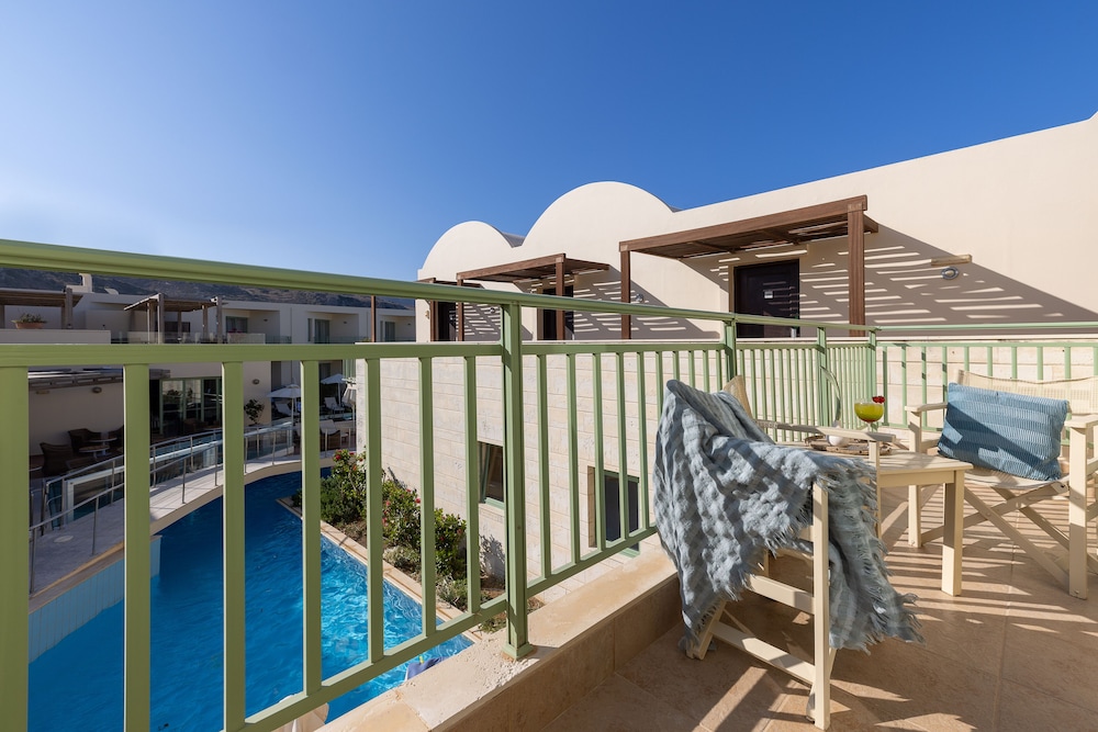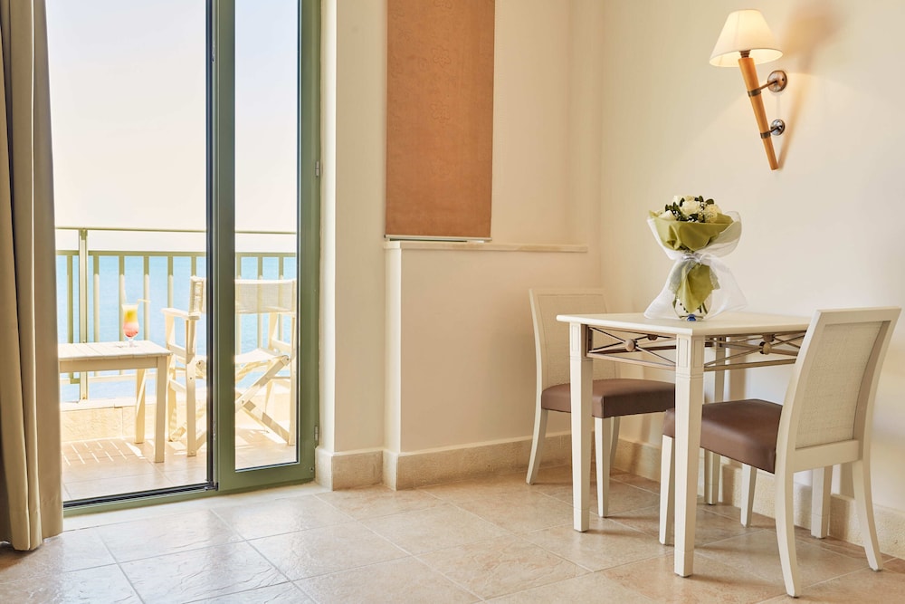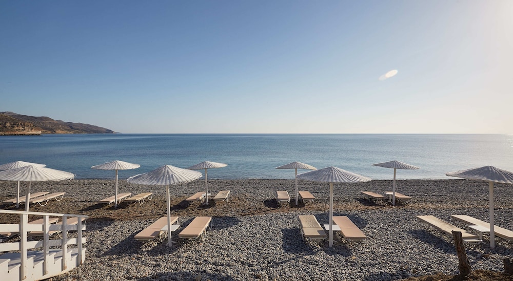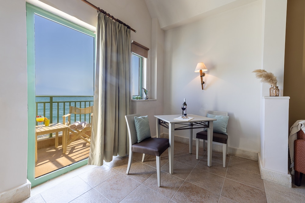 The property is right on the ocean and we had ocean view room. Spectacular! Esp compared to other hotels in the town or Kolymbari. The food was amazing!