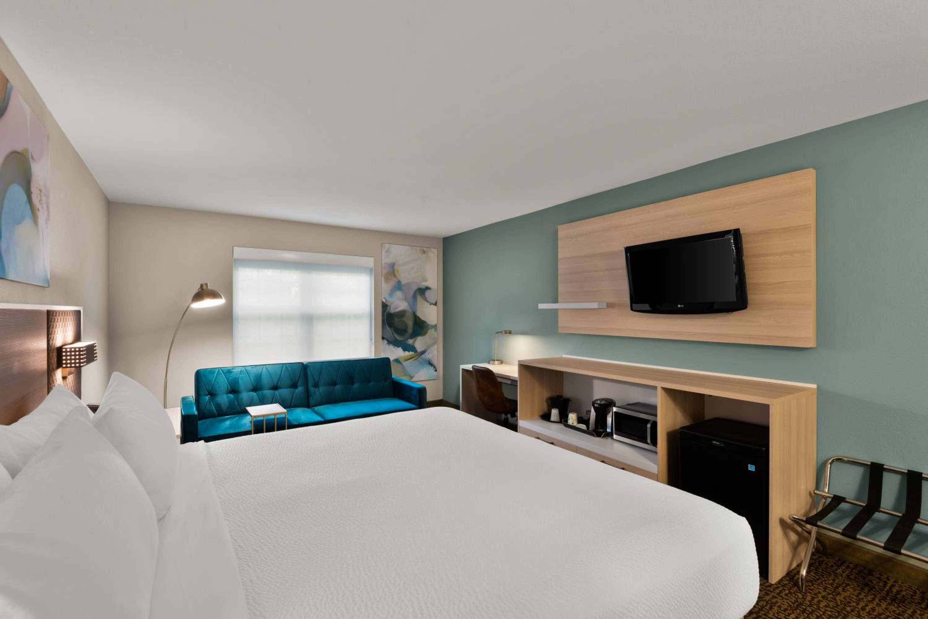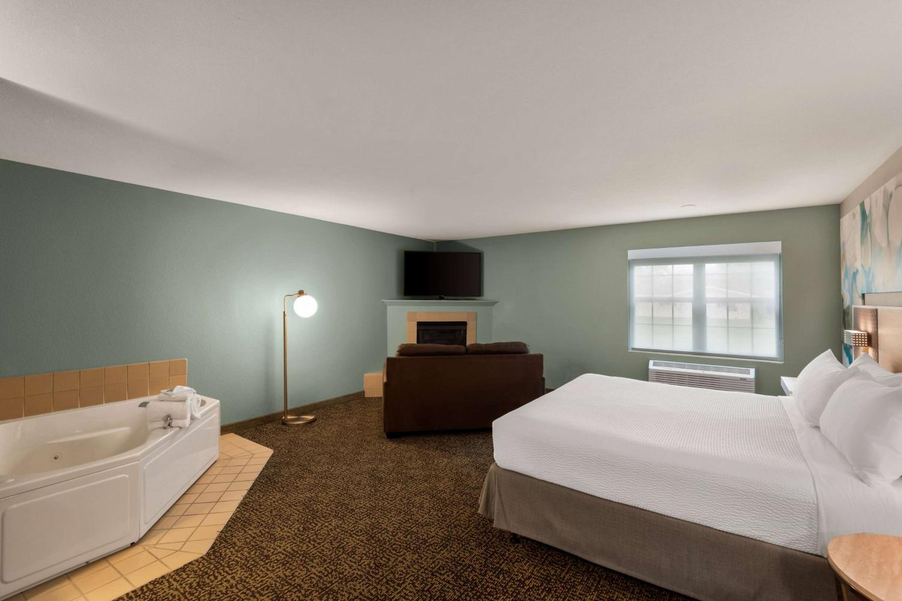 Everything, room was very spacious, and we really enjoyed the Jacuzzi and fireplace. It was also nice to see bottles of shampoo, conditioner, and body wash in the shower as many places don't even leave the mini ones anymore. The pool and hot tub were really nice as well with a giant size chess board. The breakfast was really good and it changes so it's not the same thing every day. The bed was very comfortable, and the staff were really polite and helpful. The hotel was amazingly quiet even for an event going on. Def will be back!