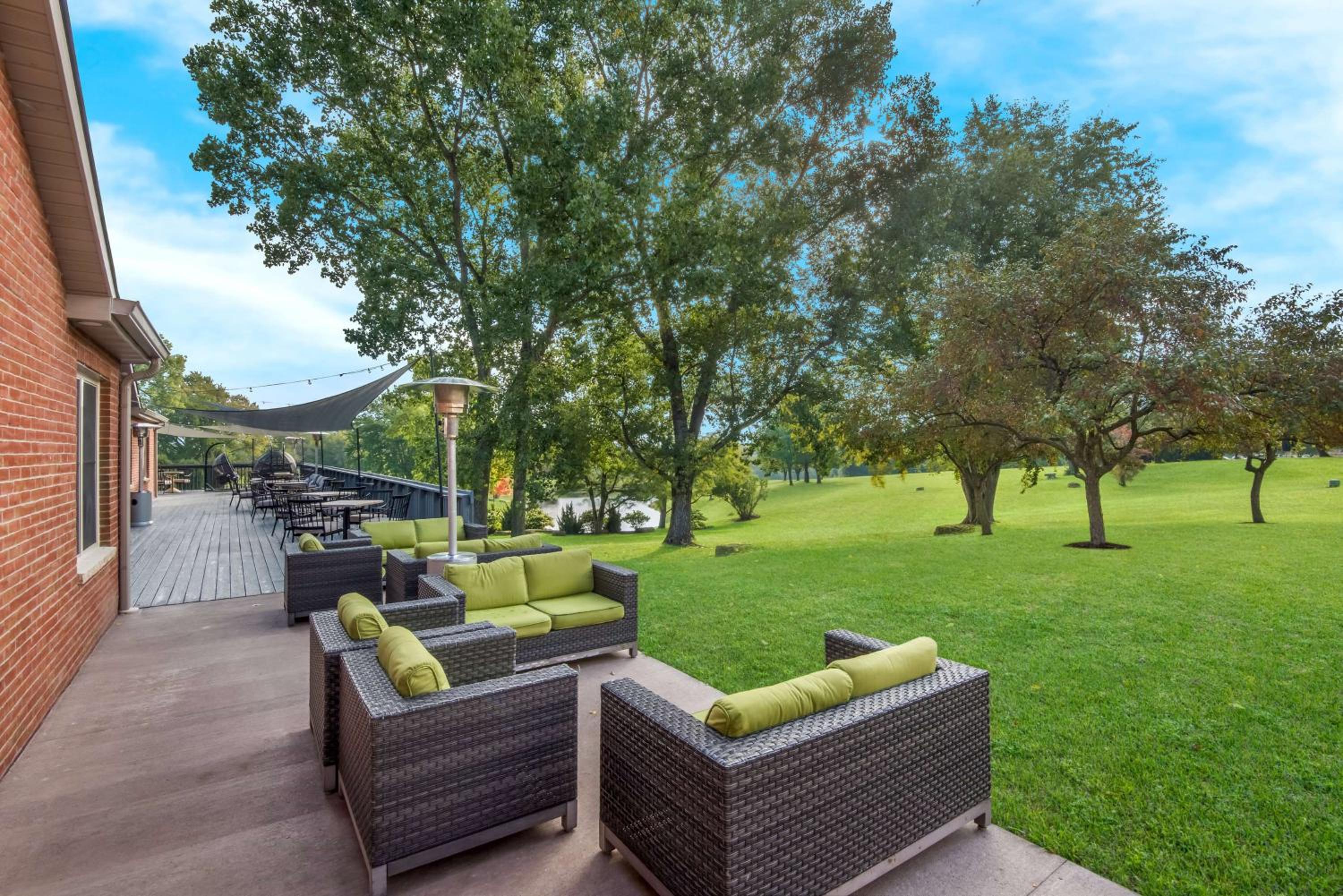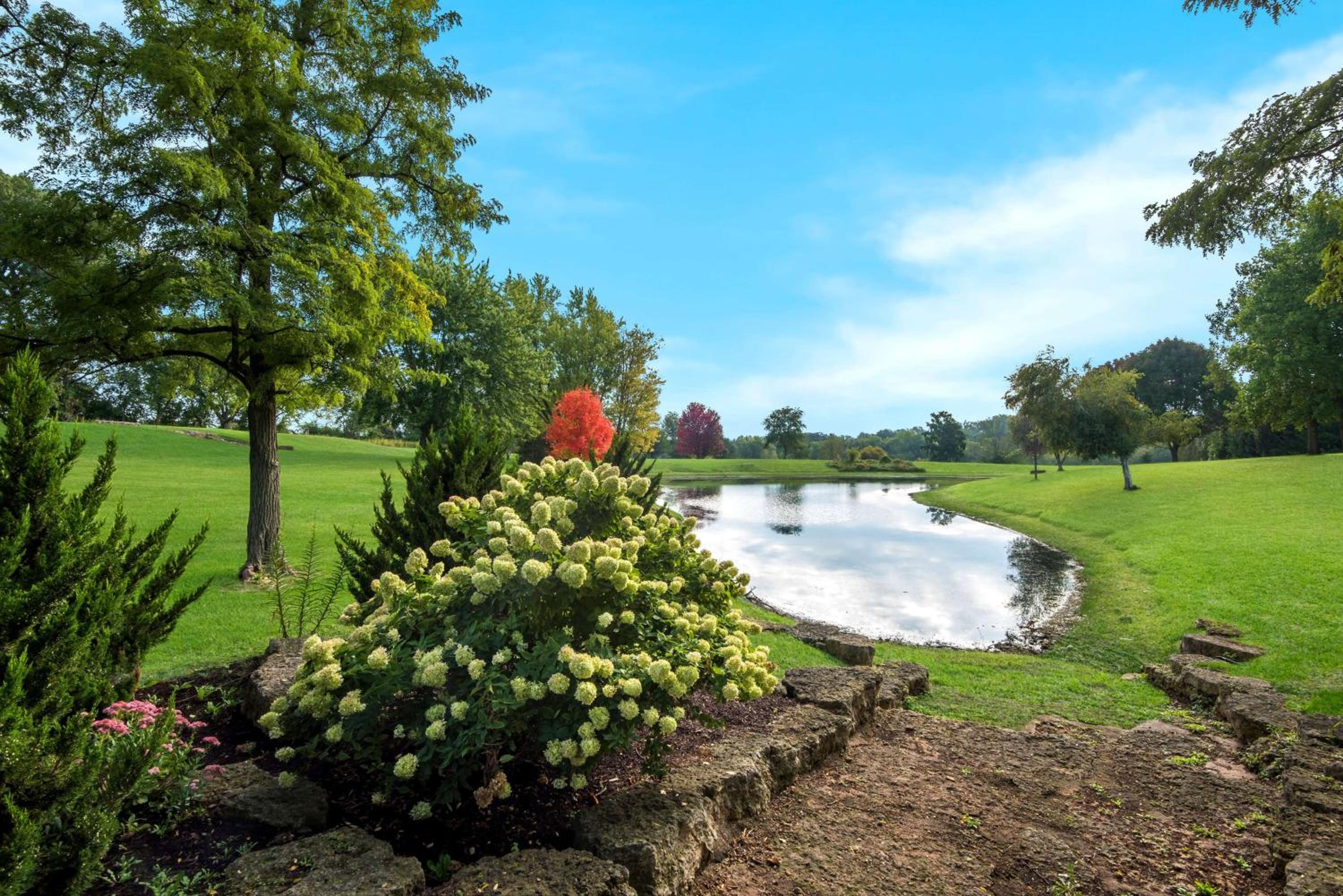 Enjoy the picturesque views from our wraparound deck overlooking 10 acres of beautifully landscaped gardens and a tranquil pond, providing a peaceful escape for our guests.