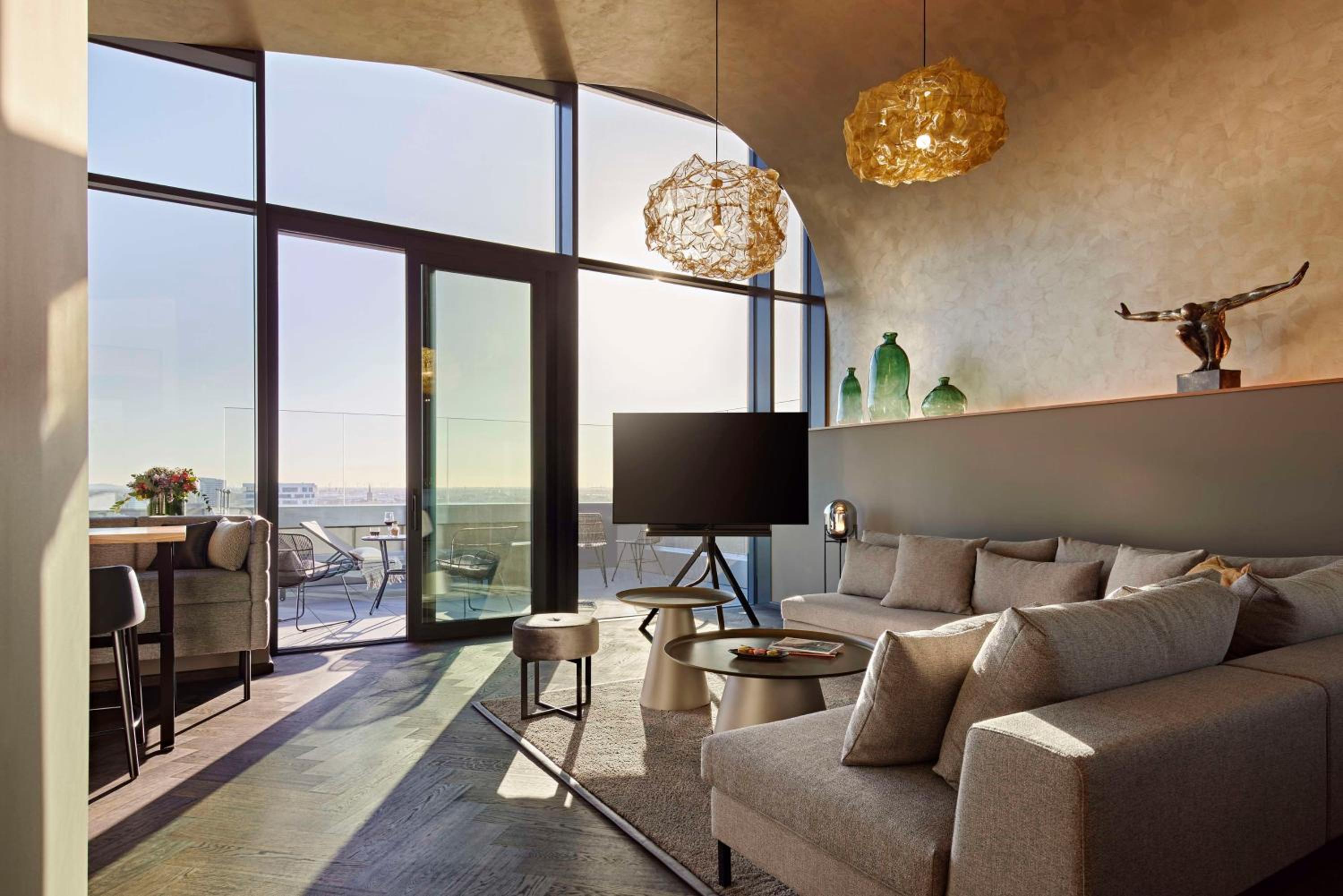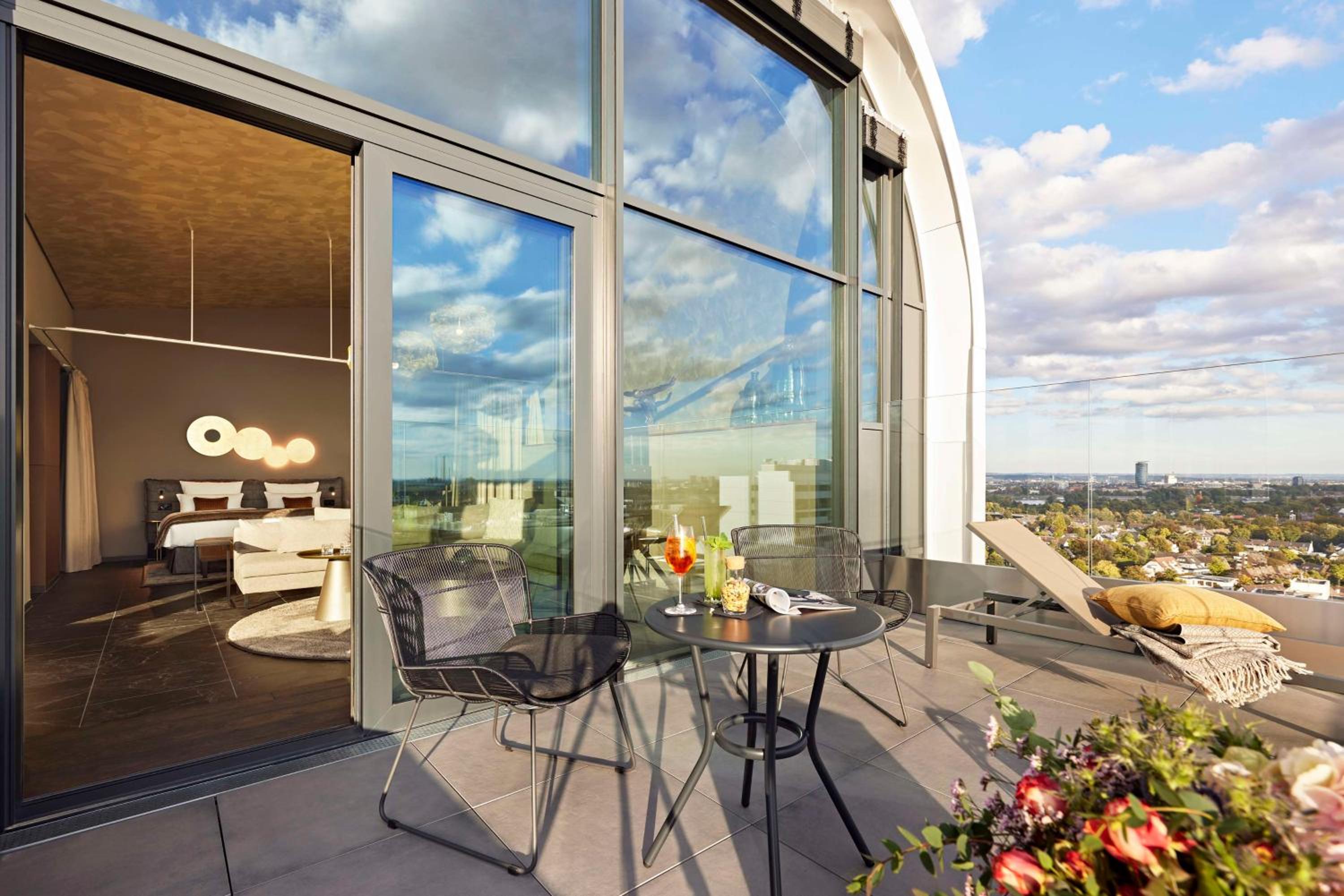 Amazing view over the Skyline of Düsseldorf. This was the most amazing view I have had so far in Germany, i stayed up late just to watch the Sun rise. Great staff, discrete, but very friendly and welcoming. Awsome Professionalism in every aspect.