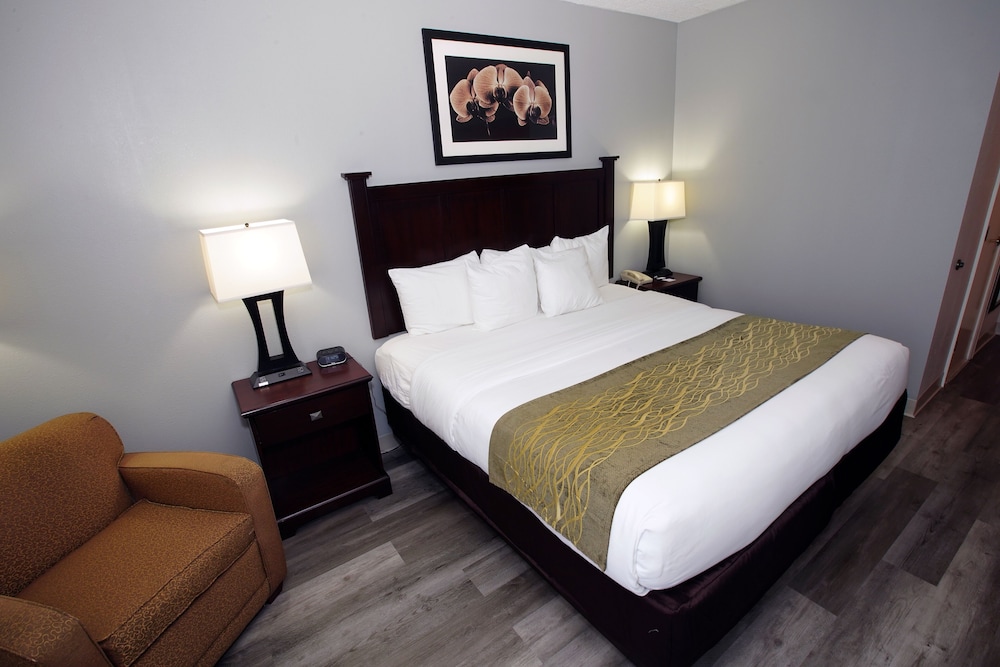 This is a nicely updated budget hotel. It's a bit tricky to access off the interstate. It's very quiet and the room was comfy. We couldn't figure out why they only have throw pillows on the bed, 5 in all. I wish we had brought our own but other than that the bed was comfy and the linens were nice. Their staff was very helpful mailing an item I left in the room in a timely manor.