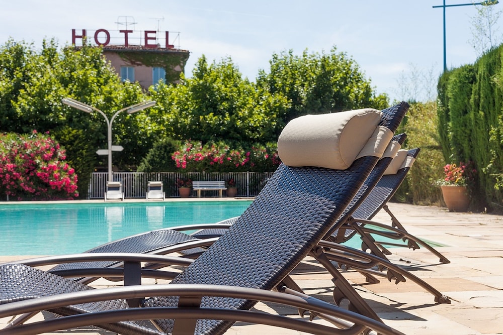 Propreté de la salle de bain et de la chambre irréprochable. Un personnel très agréable. Magnifique piscine. Petit bémol sur la climatisation un peu bruyante et la chambre un peu petite mais suffisant pour 1 nuit ou 2.