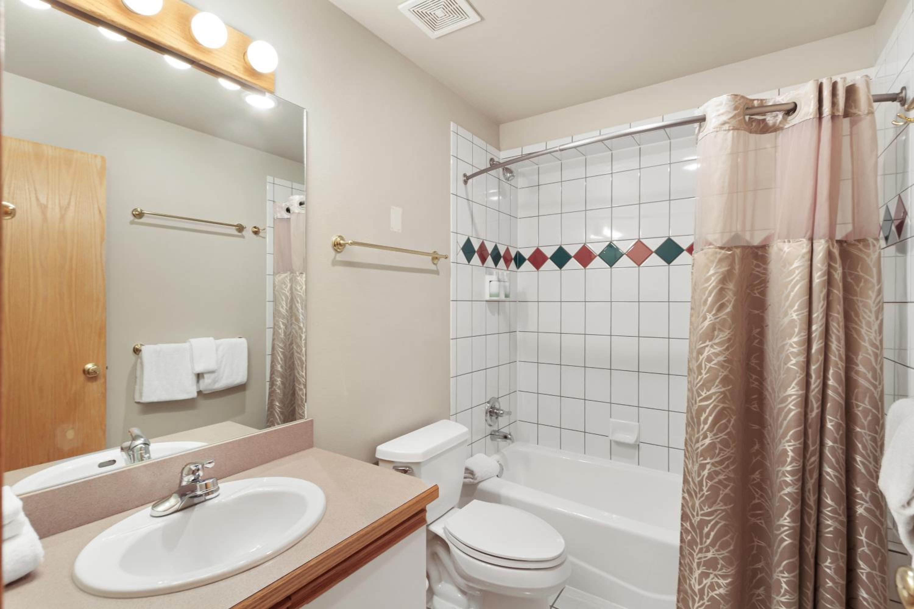 The stay was overall fine, but a few details stood out. It would be helpful if coffee filters were supplied—the provided Folgers coffee was weak and not very enjoyable. One of the queen beds sagged noticeably and would have been uncomfortable to share. A vanity cabinet door was loose and crooked, and some of the artwork frames were chipped and damaged. The place has a dated feel, which is expected, but the broken items made the datedness stand out even more.