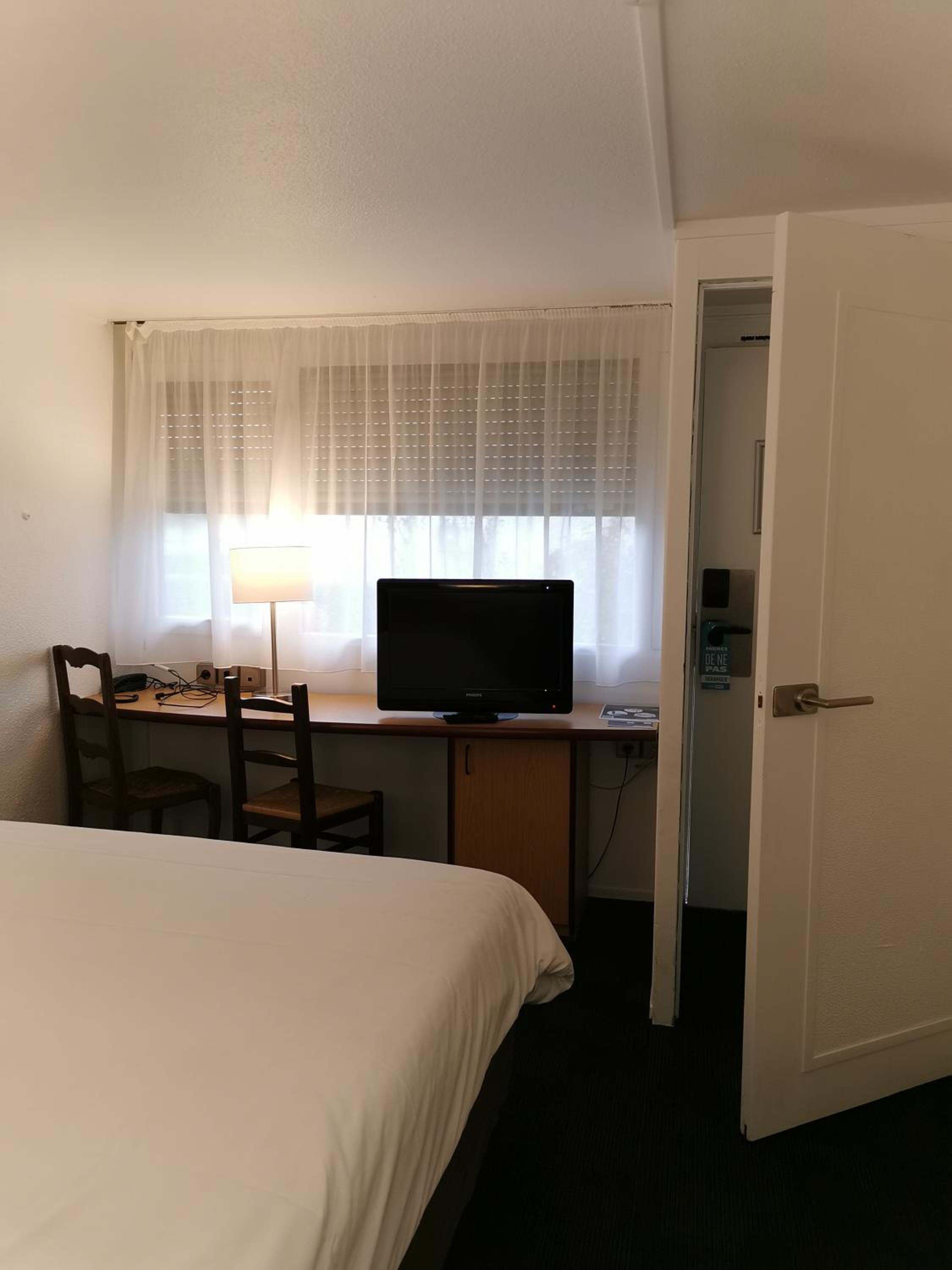 Chambre confortable, climatisée mais située sur une coursive (donc des bruits de personnes rentrant et sortants de leur propre chambre). Bon petit déjeuner. Proche de l'aéroport par l'autoroute et les périph (environ 10 mn).