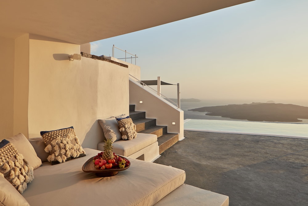 Absolutely enjoyed our stay at this hotel! The location is perfect! Even though it is located in the center of Fira, inside of the hotel it is super quiet. We cold not stop enjoying a beautiful view of caldera and the sea from our room’s balcony. The hotel’s pool area also has fantastic views!