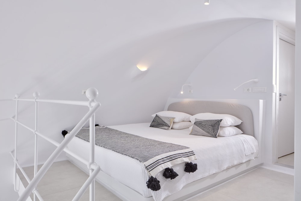 Nice location, very caring staff especially Joy and Theo. Nice view of the Caldera. It’s a nice property but nothing luxurious about it. We were in room 10 which is at the bottom of a very narrow spiral metal staircase, not at all suitable for middle age or older people. Bed is small for 2 adults, I am 6ft tall and my feet dangled, no other furniture in the room. There is small balcony with 2 chairs, I wish they would use water repellent cushions because ours were soaking wet, couldn’t use the balcony chairs the first day. View of Caldera is nice but there is a pool right outside the room which was empty and dirty with plastic bottle floating in it. Lot Nextdoor is empty with over grown dry vegetation and rubbish strewn around. Good variety of made to order breakfast, staff’s attitude was the highlight of our stay.